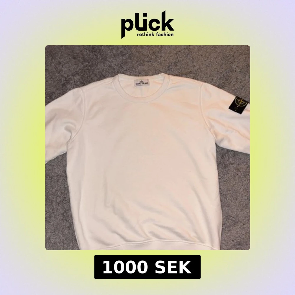Säljer en stilren vit sweatshirt från Stone Island. Tröjan har en klassisk rund halsringning och en ikonisk logga på ärmen. Perfekt för en avslappnad och trendig look. Tveka inte på att höra av dig om du har några frågor eller funderingar.