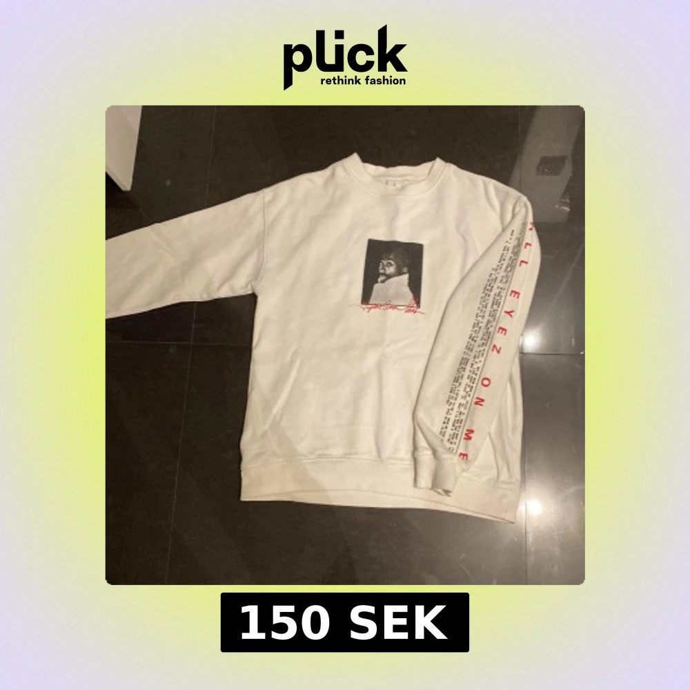 Säljer en vit sweatshirt från Junkyard med ett stort 2Pac-tryck på framsidan. Tröjan har texten 'ALL EYEZ ON ME' längs ärmen i rött och en lista med låttitlar. Perfekt för dig som gillar streetwear och musik. Aldrig använt då jag köpte fel storlek.//Nyskick