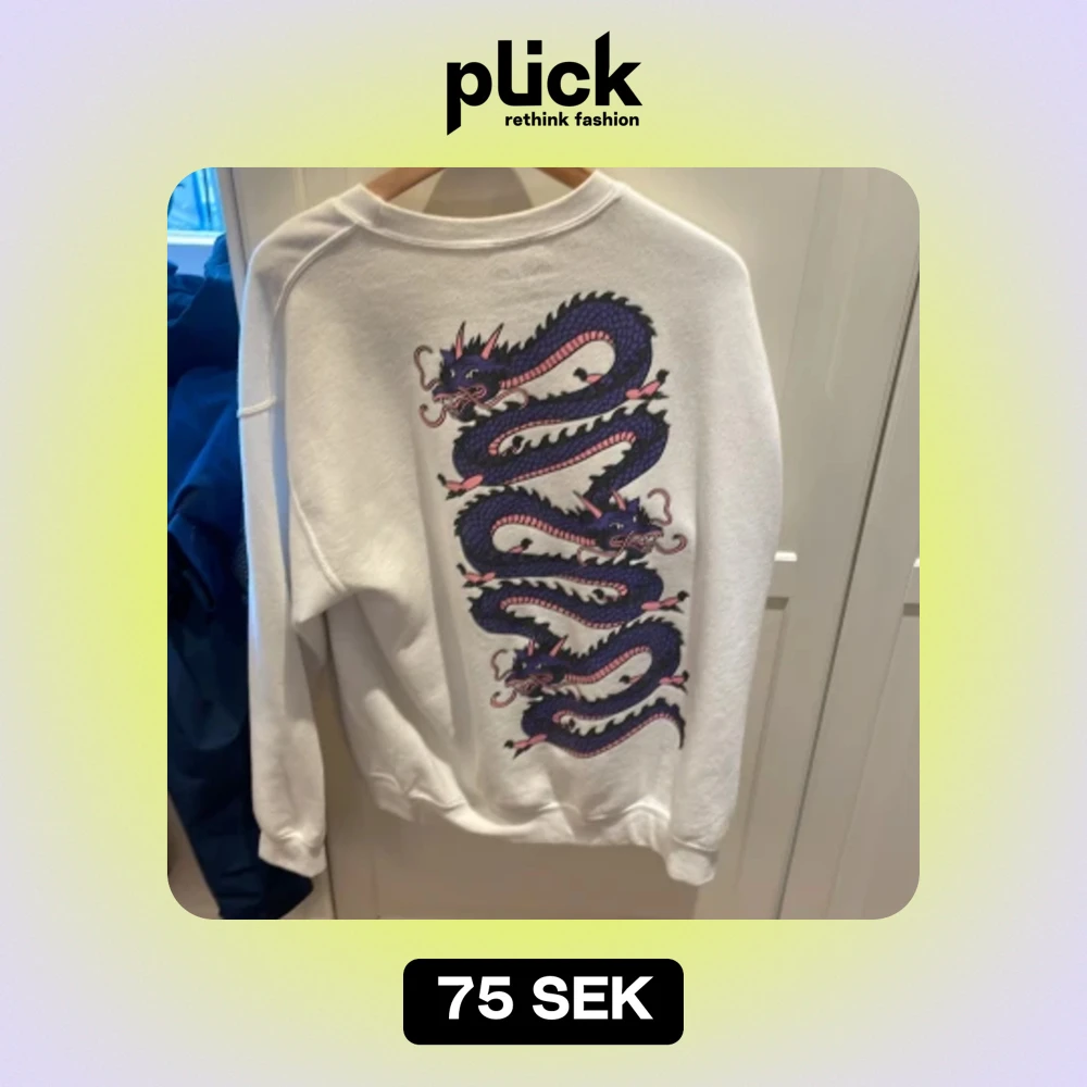 Vit sweatshirt med tryck på ryggen, storlek: M