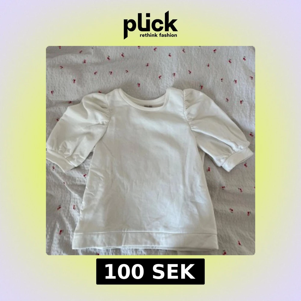 Säljer en söt vit topp från Pieces med puffiga ärmar. Perfekt för en stilren look. Toppen har en rund halsringning och är gjord i ett mjukt material.