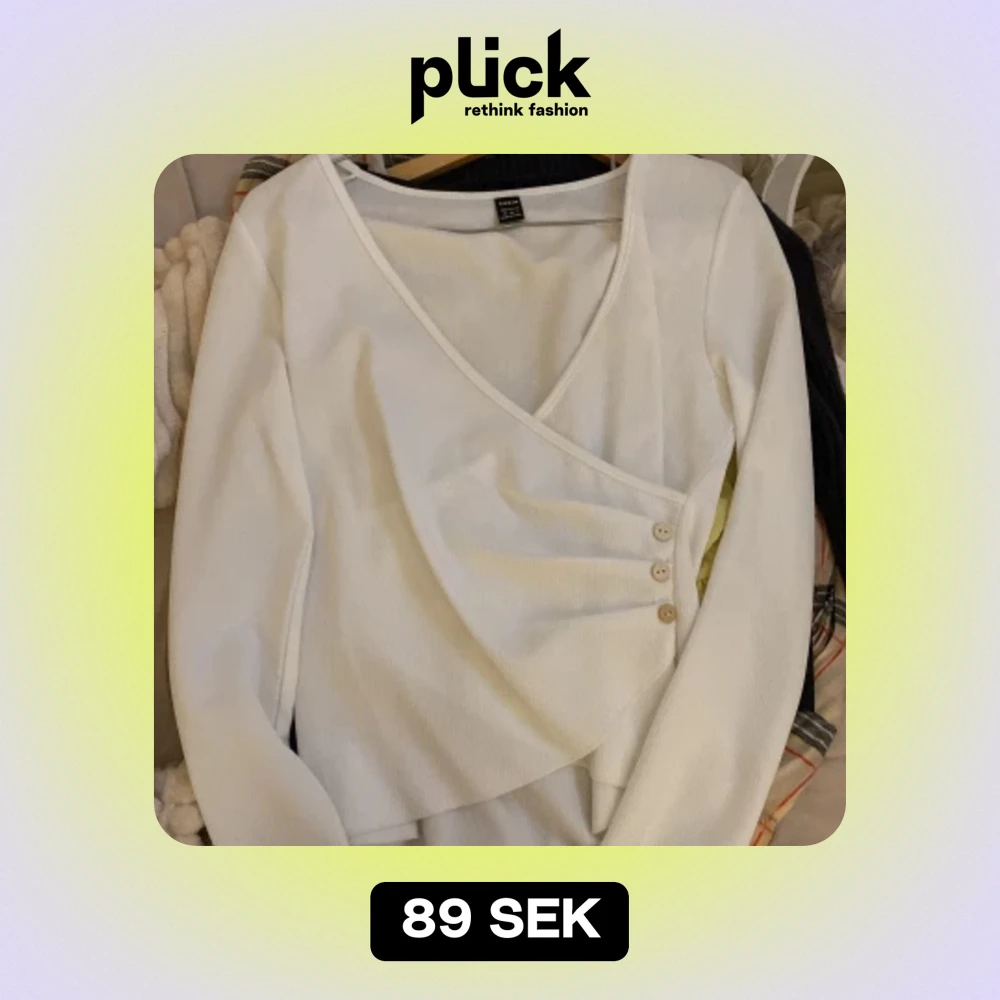 Säljer denna vita tröja, med design 3 knappar vid sidan. Använt 1 gång :) Fri frakt