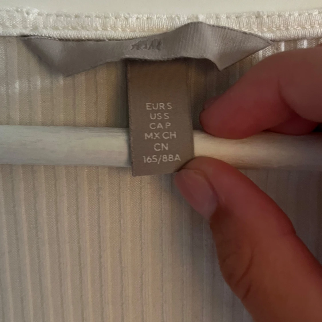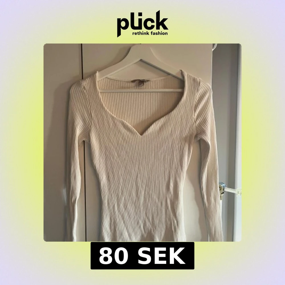 Säljer en vit ribbad långärmad topp från H&M med snygg v-ringning. Toppen är figurnära och har en mjuk, stretchig känsla som passar perfekt till jeans eller kjol. Använda fåtal gånger.