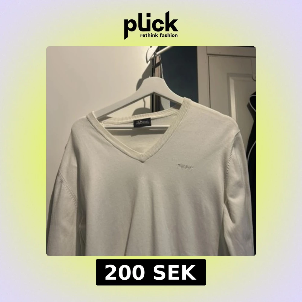 Säljer en stilren vit tröja från Peak Performance med v-ringning. Tröjan har långa ärmar och är perfekt för en avslappnad stil. Den är tillverkad i ett mjukt material som ger en bekväm känsla.