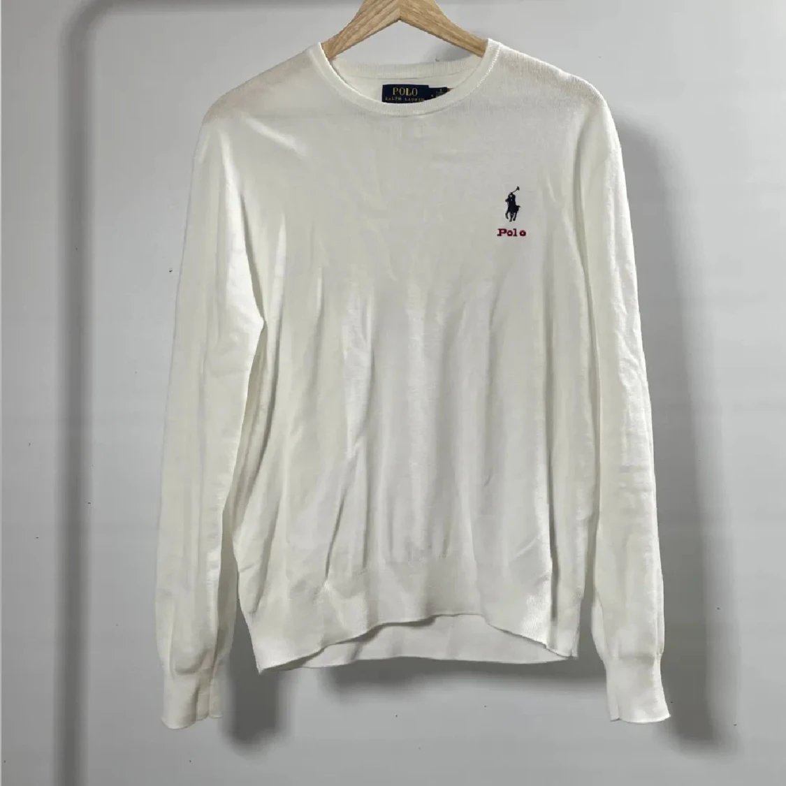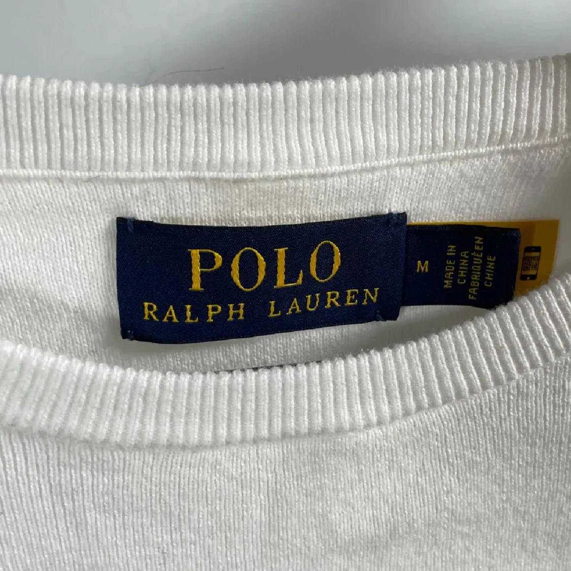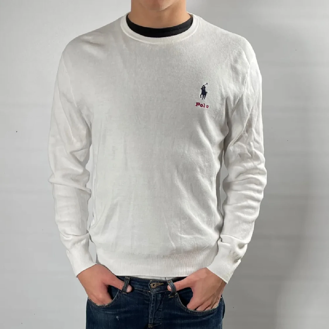 Vit långärmad tröja från Polo Ralph Lauren med klassisk rund halsringning. Tröjan har broderad logga i marinblått och rött på bröstet. Tillverkad i mjuk bomull, perfekt för en clean och stilren look.