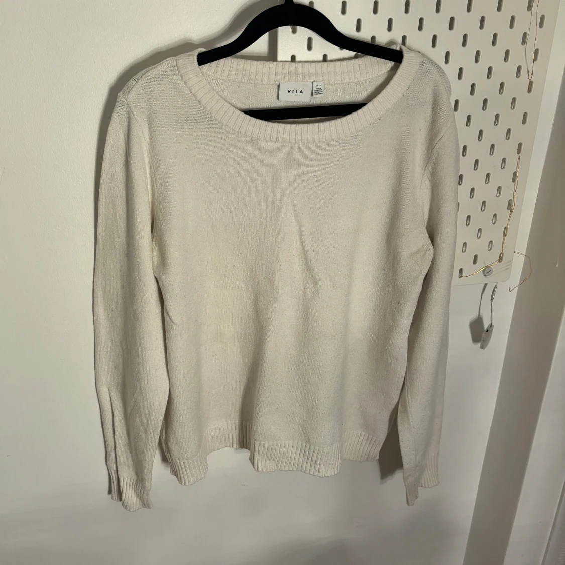 Säljer en stilren vit tröja från VILA. Tröjan har långa ärmar och en rund halsringning. Perfekt för en enkel och klassisk look. Har någon göra noppror och en längre märke.