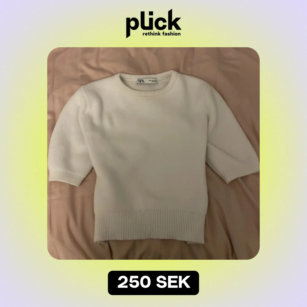 Säljer en superfin vit tröja från Zara i storlek M. Den är i bra skick och har en enkel, stilren design med trekvartsärmar och ribbade kanter. Perfekt för både vår och höst! Passar till både jeans och kjol för en casual look.