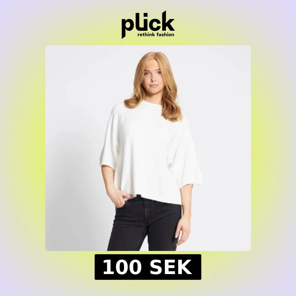 Säljer en stilren vit tröja med trekvartsärm. Perfekt för en avslappnad look. Tröjan har en lös passform och är tillverkad i ett mjukt material.