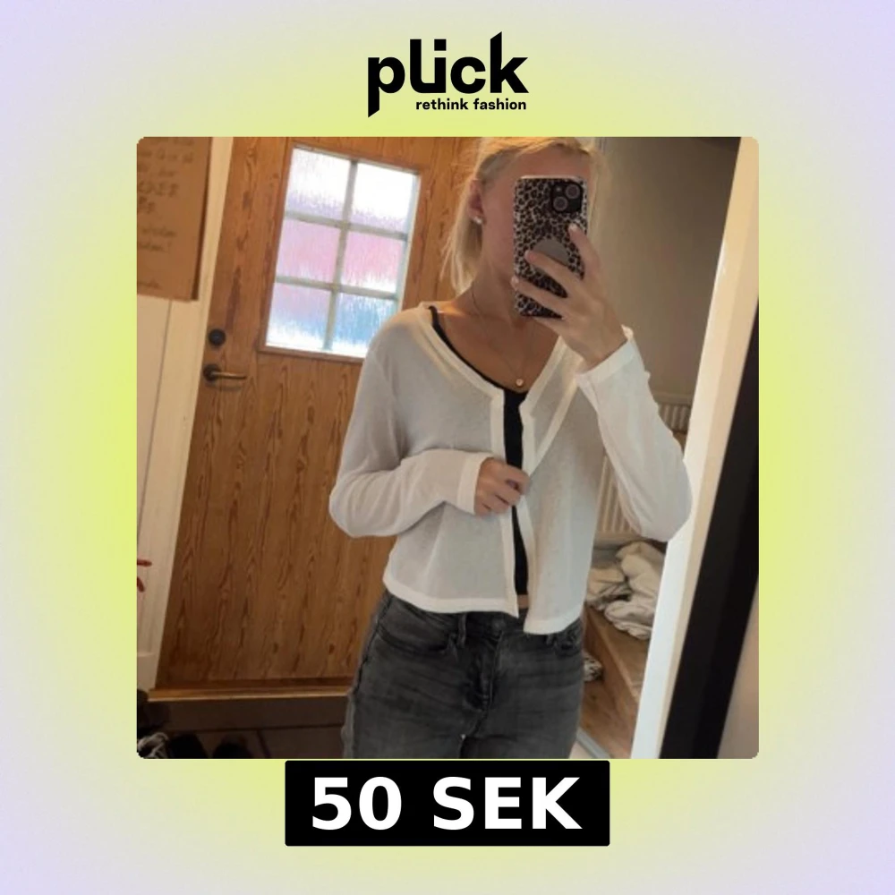 Säljer en tunn och luftig vit kofta. Koftan är långärmad, har en croppad passform och är perfekt att slänga över ett linne eller topp. Enkel och stilren design som passar till många outfits.
