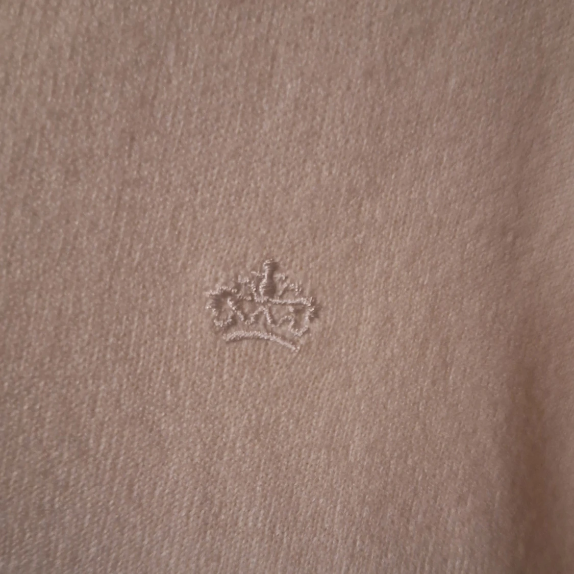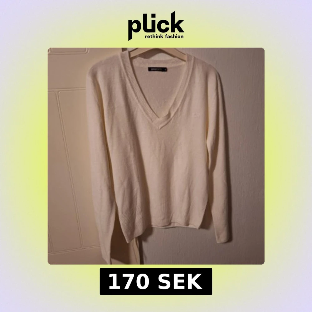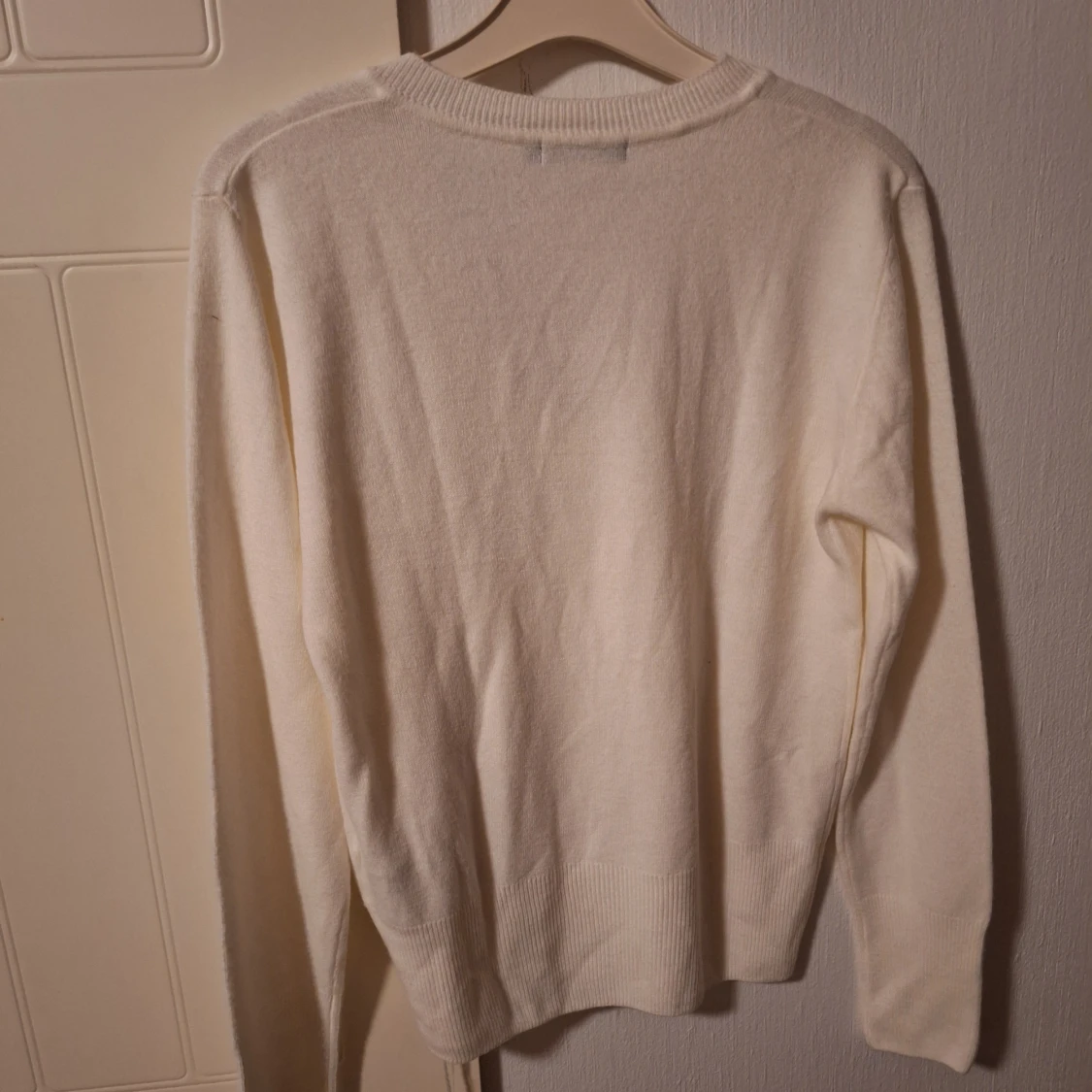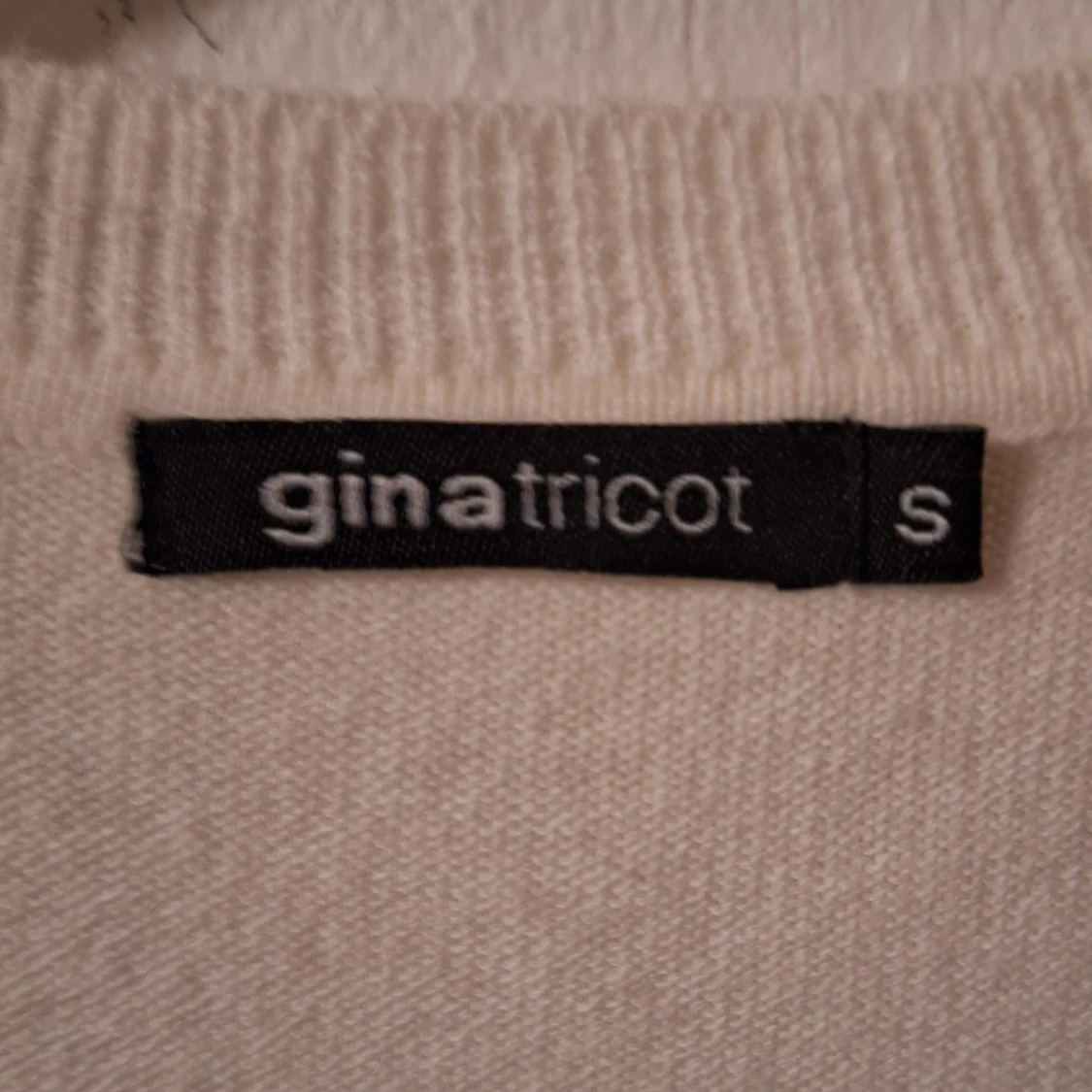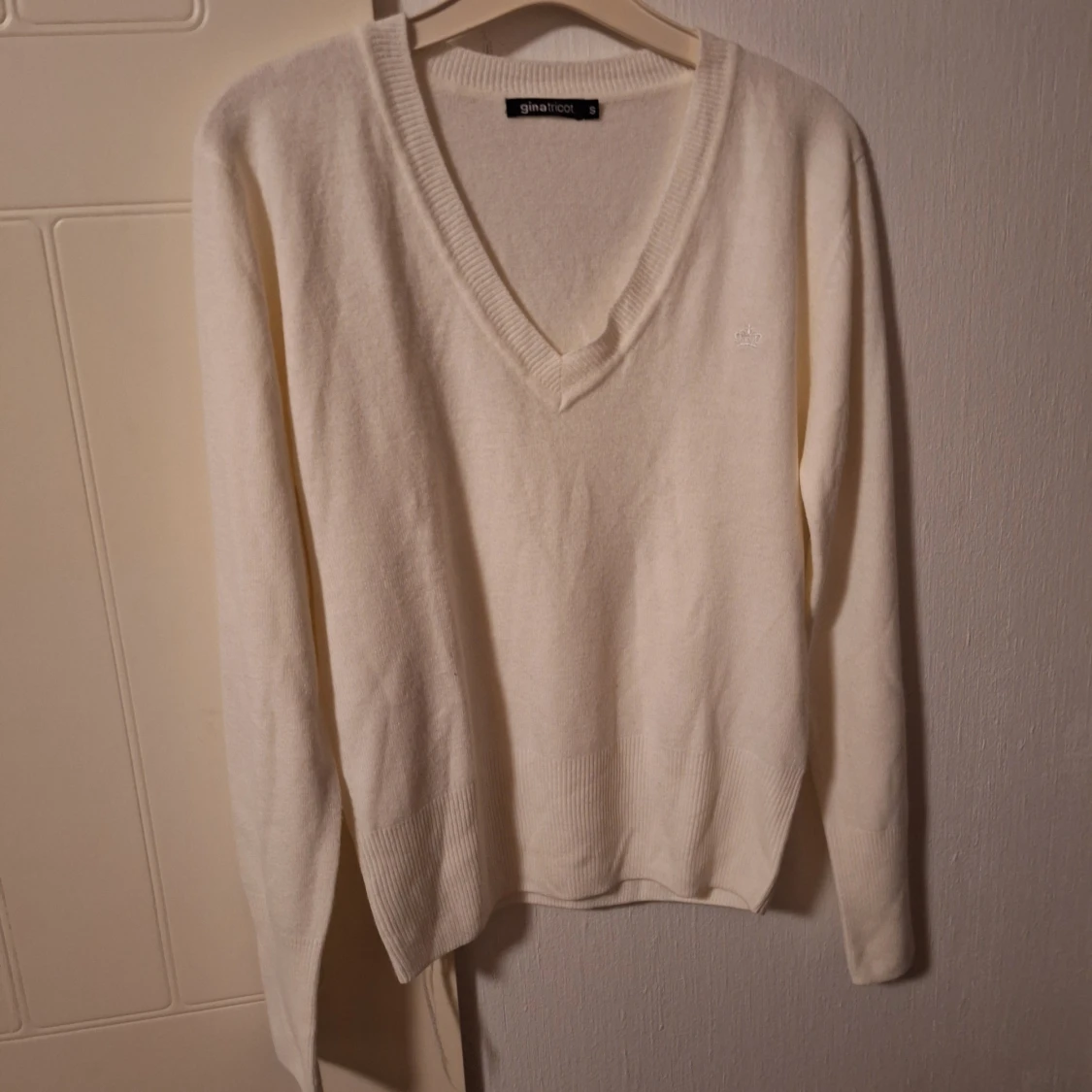 Vit v-ringad tröja från Gina Tricot i storlek S. Tröjan är stickad med ribbade muddar och har en liten broderad krona på bröstet. Super mjukt material🤩