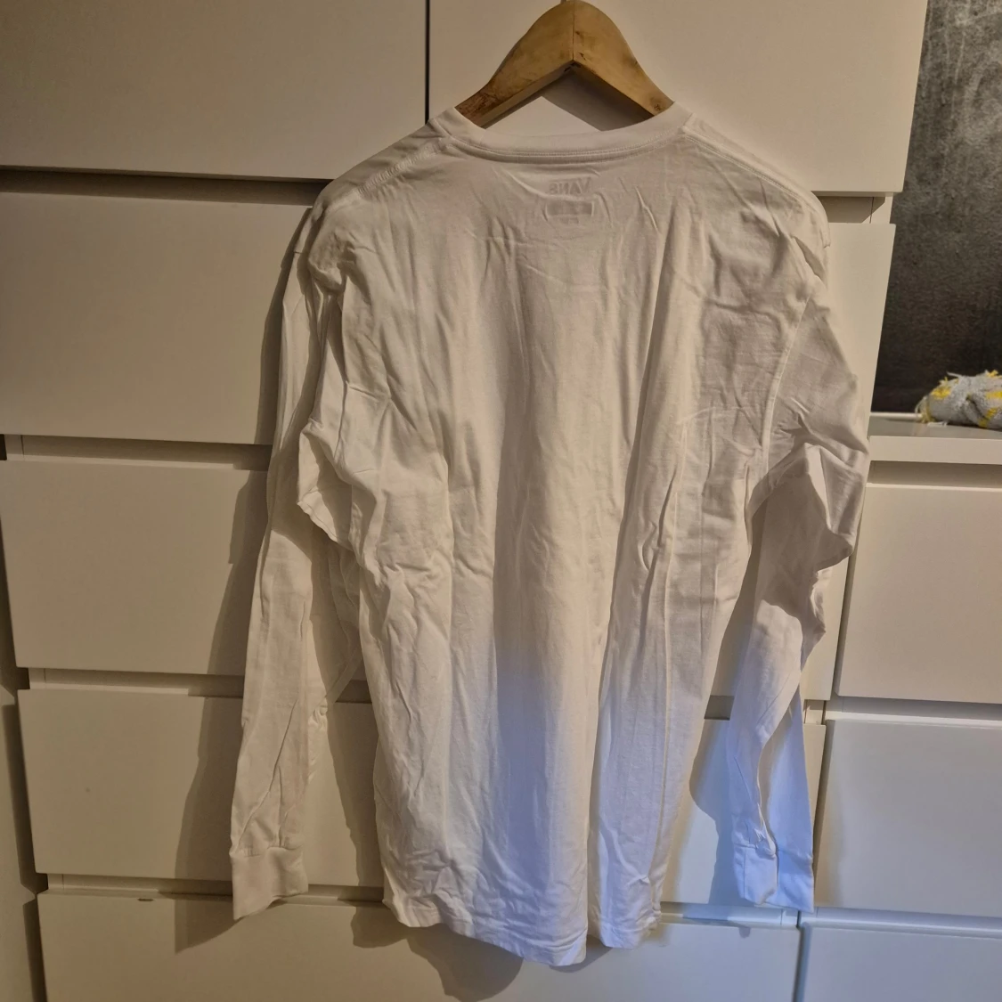 Vit långärmad tröja från Vans med blå logga framtill i streetstil. Tröjan har rund halsringning och är gjord i mjuk bomull, perfekt för en avslappnad look. Passar dig som gillar enkel och clean stil med en touch av skate.