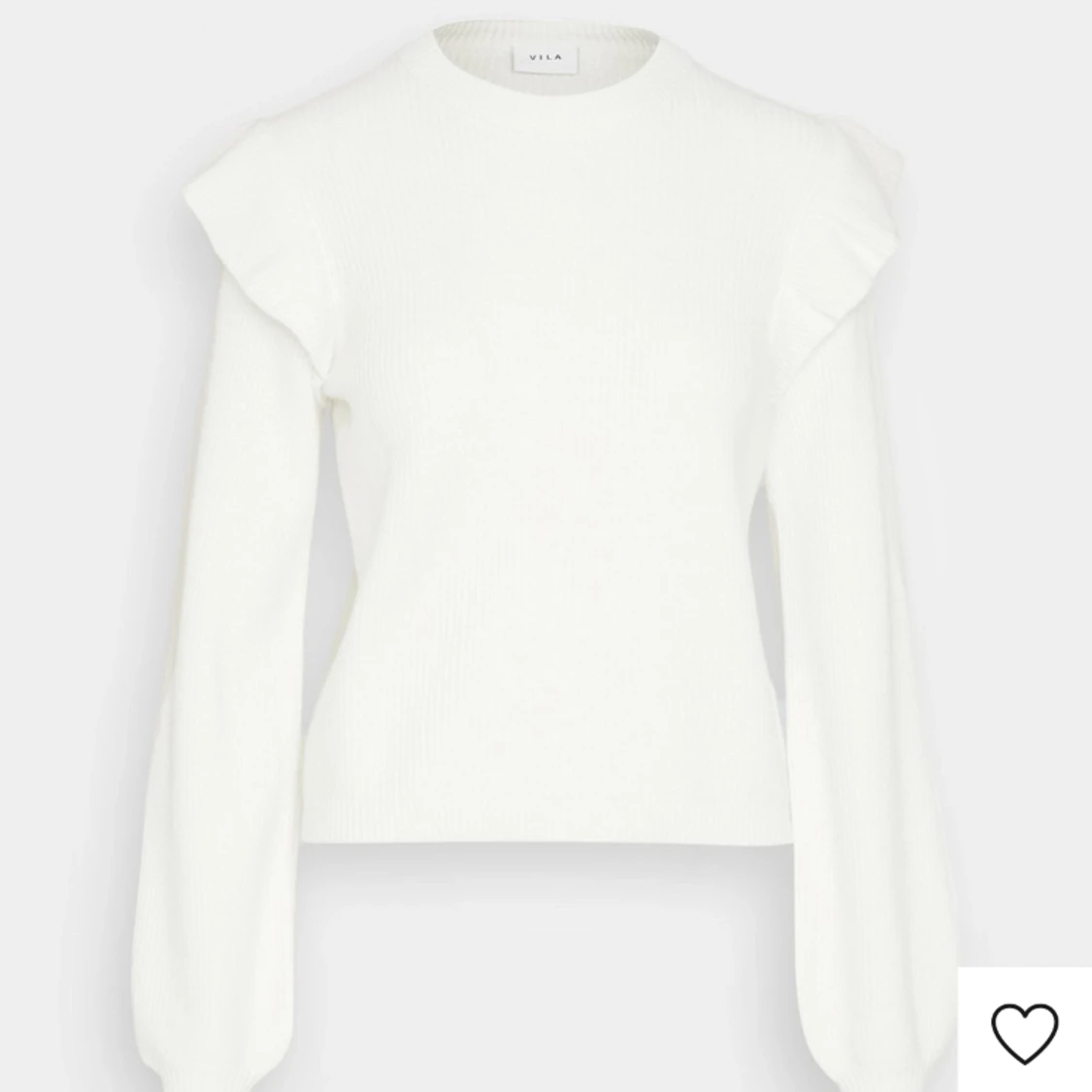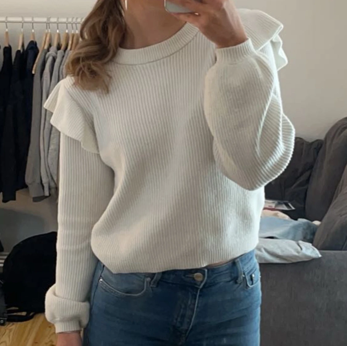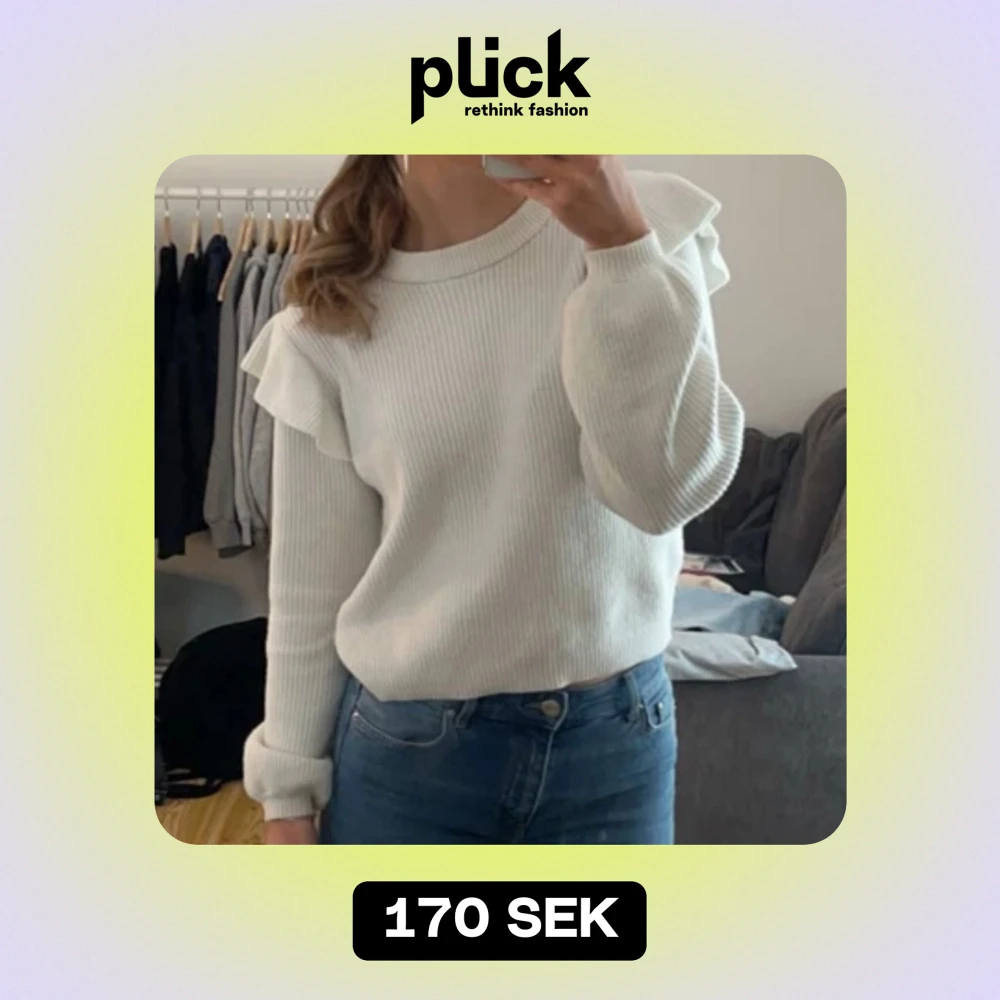 Jättefin och söt stickad tröja med volang i fint skick! Skriv till mig vid intresse❤️