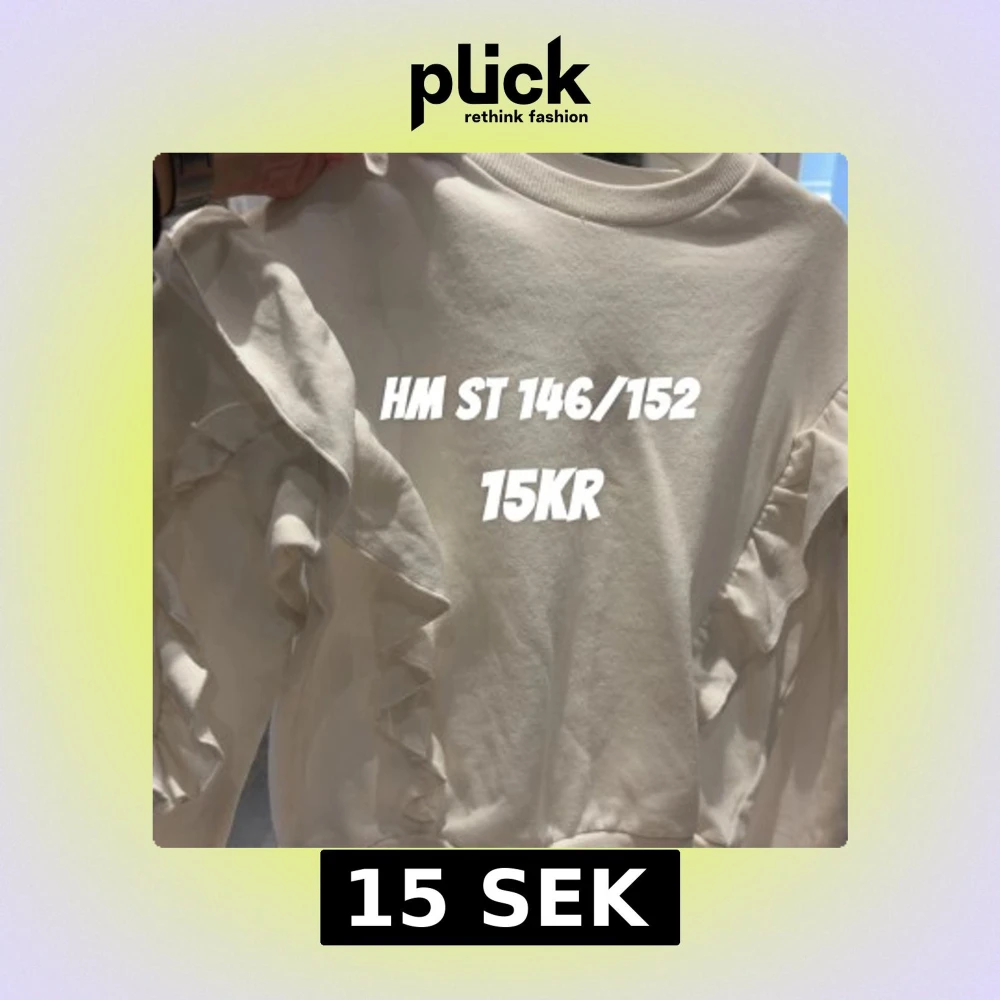 Supersöt vit tröja från H&M med volangdetaljer längs ärmarna. Tröjan har rund halsringning och är långärmad, perfekt för dig som gillar en stilren men ändå lekfull look.
