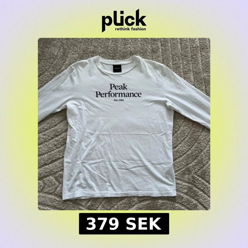 Säljer en stilren vit långärmad tröja från Peak Performance med tryck på bröstet. Perfekt för en avslappnad look. Tröjan är i storlek S och har en klassisk passform.