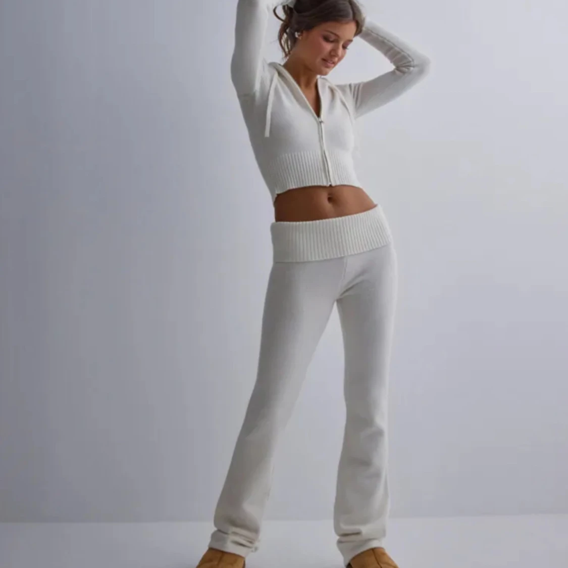 Snyggt vitt stickat sett från Nelly! Knappt använt, både tröja och byxor är i storlek S. Hör av er för fler bilder!💕 Priset kan diskuteras!