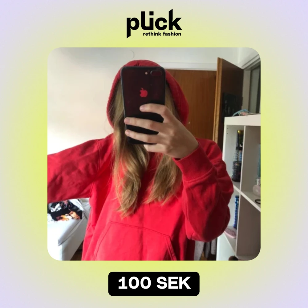 En röd hoodie från Weekday i storlek XS. Hoodien har en klassisk design med en stor ficka på framsidan och en huva. Den är långärmad och har ribbstickade muddar vid ärmslut och nederkant.