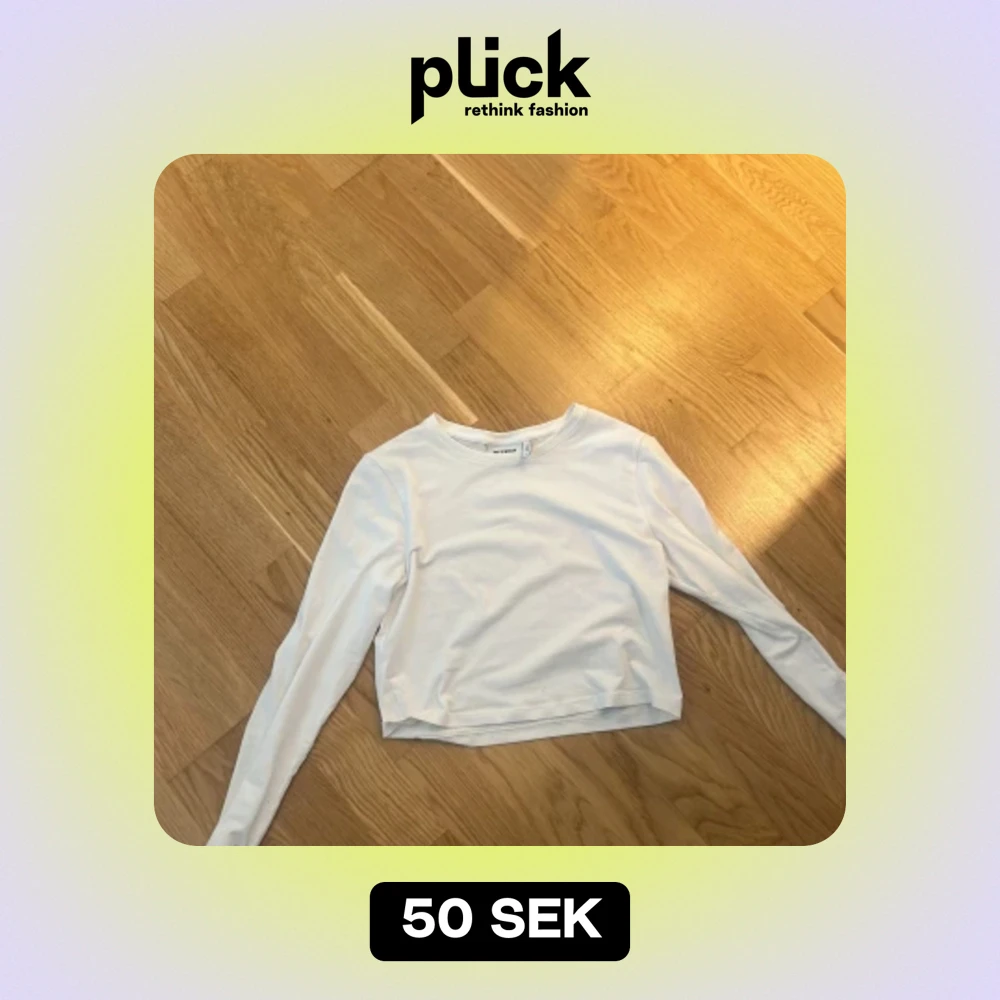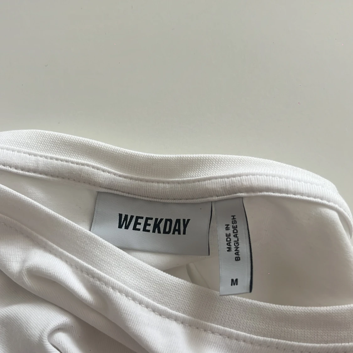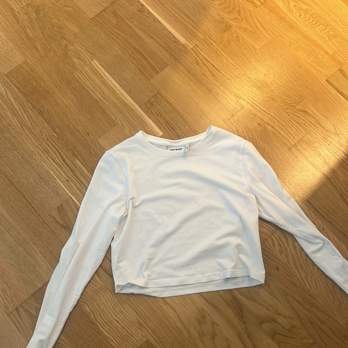 Supersöt vit långärmad topp från Weekday. I gott skick. Storleken är M men skulle även passa S tycker jag💕