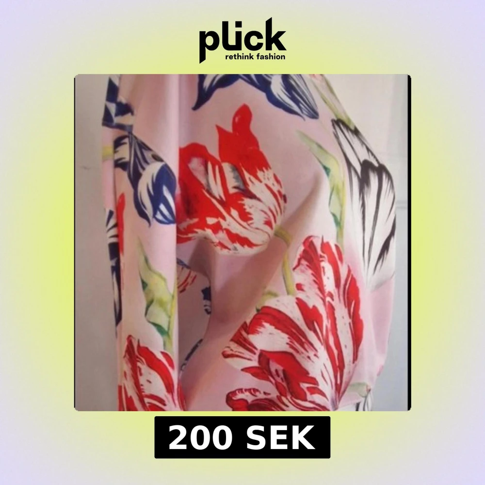 Säljer en superfin tröja med stora blommor i rött, blått, svart och grönt på en ljusrosa bakgrund. Klänningen har lång ärm och rund halsringning, med ett färgstarkt och lekfullt mönster som verkligen sticker ut. Perfekt för dig som gillar att synas och vill ha något unikt i garderoben.