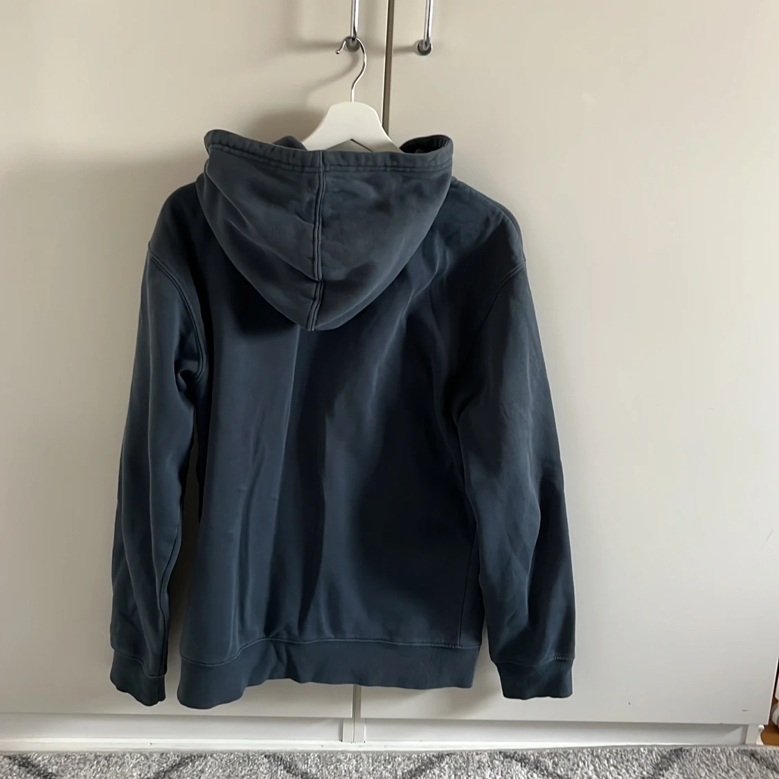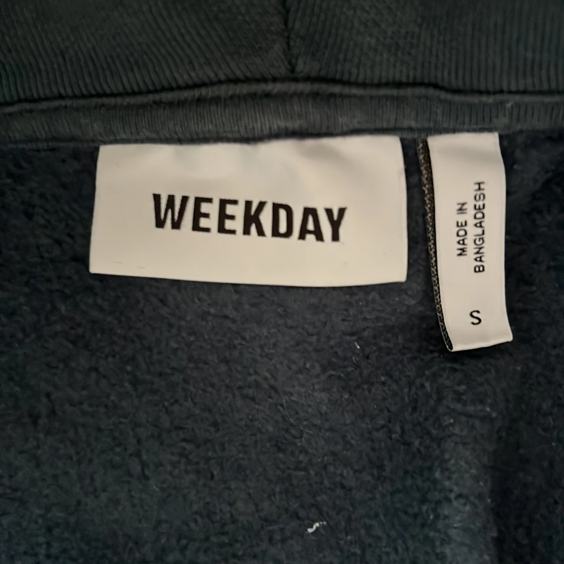 Säljer en stilren mörkgrå hoodie från Weekday. Den har en dragkedja framtill och en praktisk huva med snörning. Perfekt för en avslappnad look. Två fickor framtill för extra bekvämlighet. Jag är 194 cm och den är lite liten så om man har storlek M så passar den