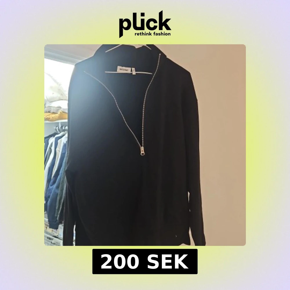 Svart långärmad tröja från Weekday i storlek S med snygg half zip-dragkedja framtill. Tröjan har en enkel och clean look med normal passform och är tillverkad i mjukt bomullsmaterial. Perfekt för chill dagar och enkel att matcha med jeans eller cargos.