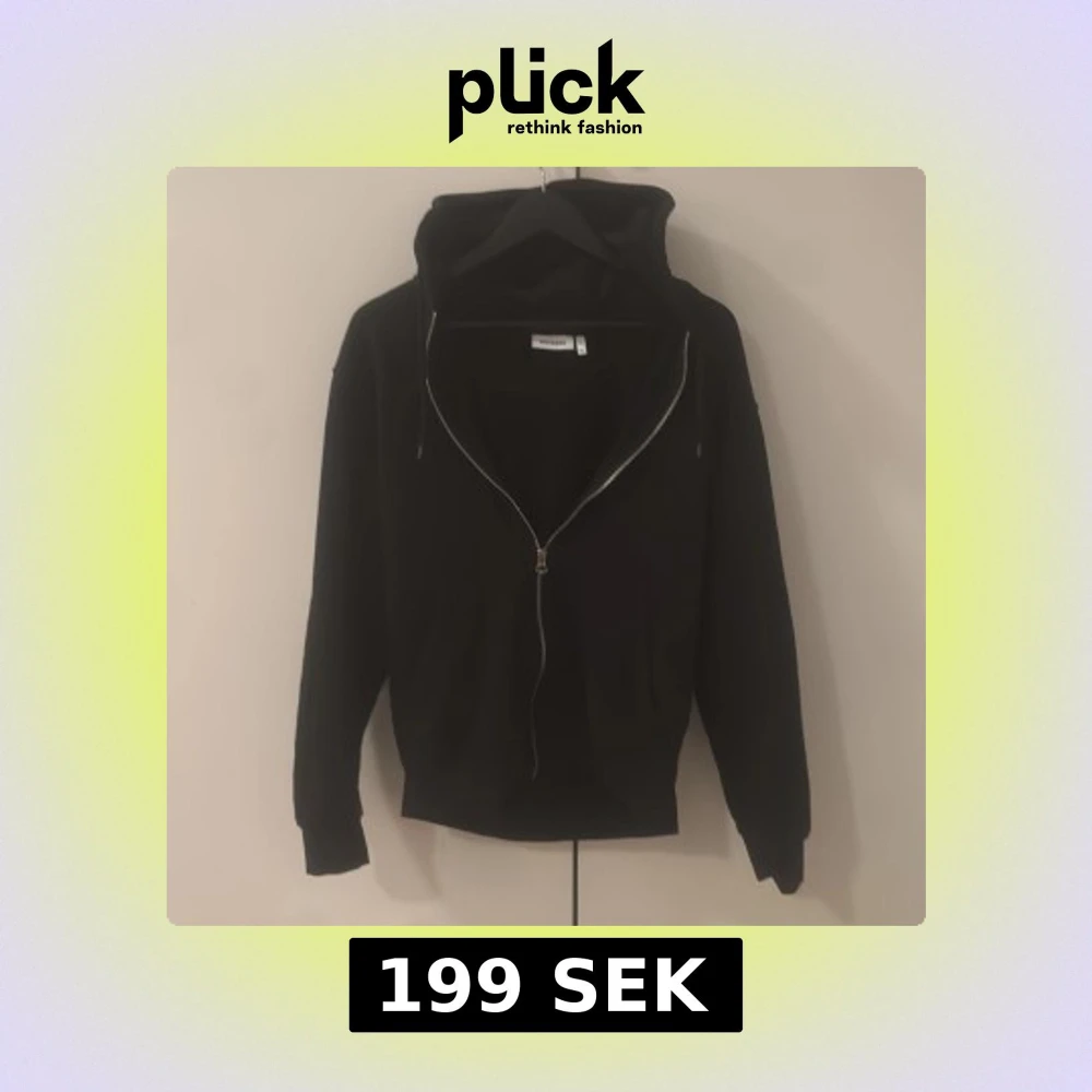 Svart hoodie från Weekday i storlek XS. Klassisk modell med huva, långa ärmar och hel dragkedja framtill. Perfekt basic-plagg med ribbade muddar och mjukt material. Snygg och enkel att matcha till allt. Köpt för ca 600 mitt pris 300.