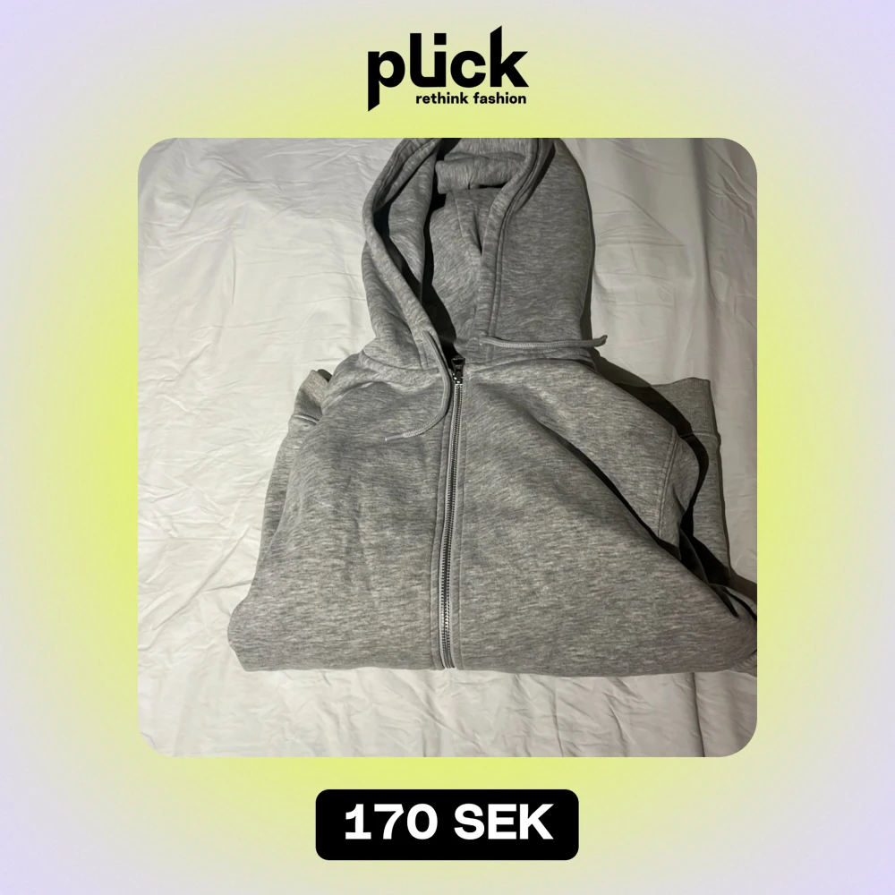Säljer en stilren grå hoodie från Weekday i storlek S. Den har en dragkedja framtill och en mysig huva. Mycket bra skick använd en gång