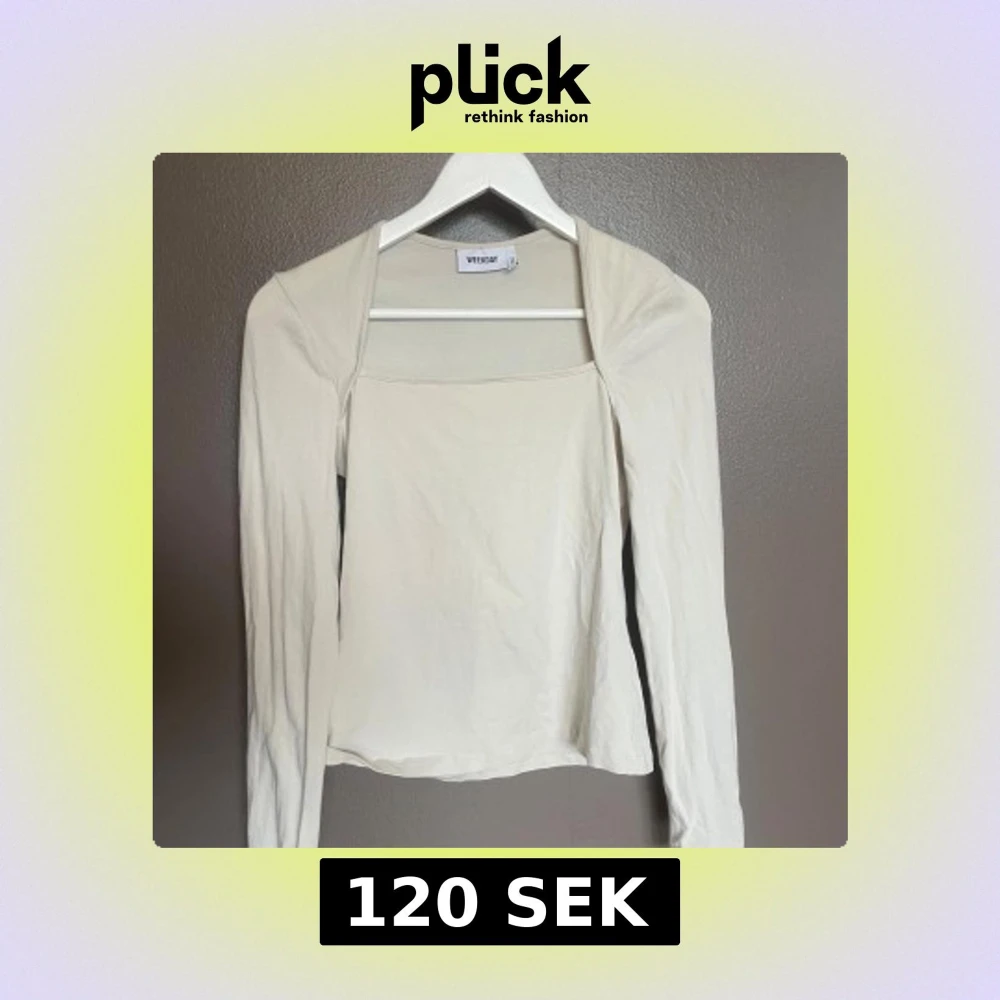 Klassisk vit långärmad topp från Weekday. Square neck-ringning och figurnära passform – perfekt basplagg till vardag eller att styla upp. Storlek: M Skick: Mycket fint skick. Nypris ca 200 kr.