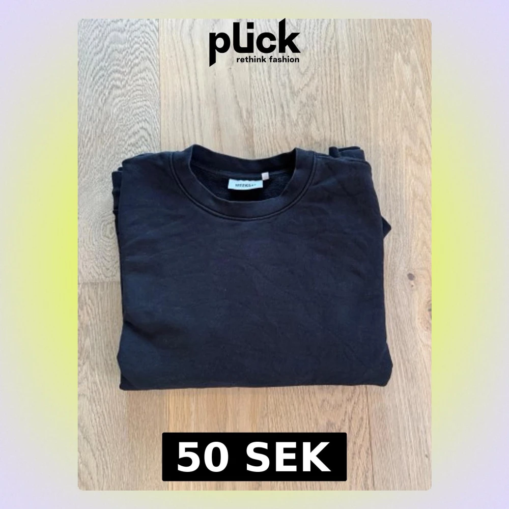 En klassisk svart sweatshirt från Weekday i storlek M. Tröjan har rund halsringning, långa ärmar och ribbade muddar vid ärmslut och nederkant. Tillverkad i mjuk bomull som är perfekt för både höst och vår.