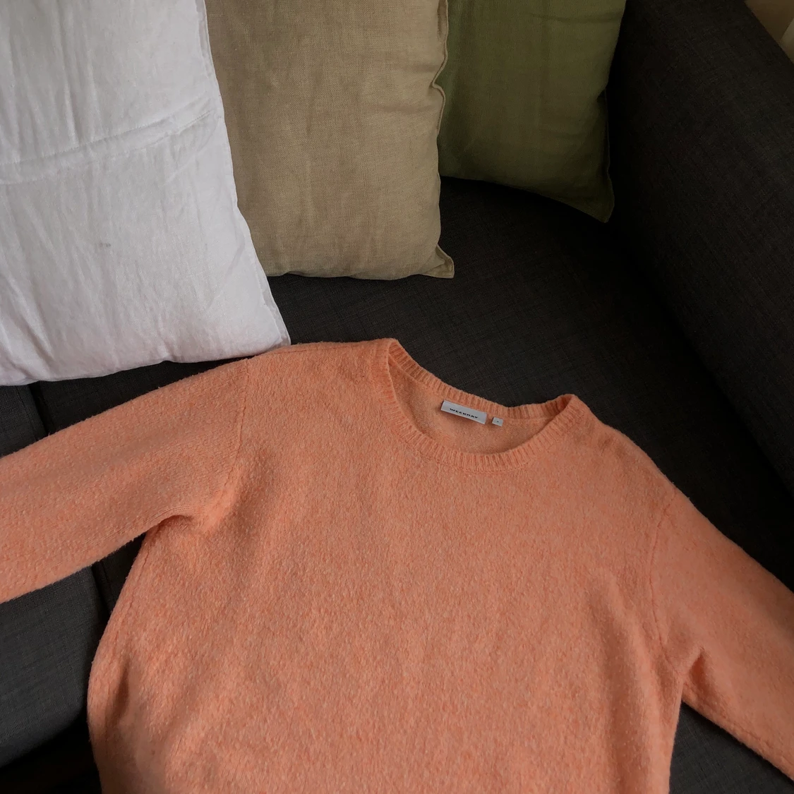 Säljer denna fina persikofärgade tröja från Weekday i storlek S. Pris 100kr exkl frakt <33