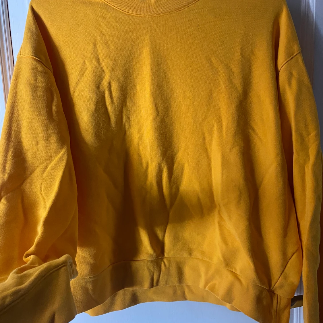 Storlek S, tröjan är lite oversized. Aldrig använd