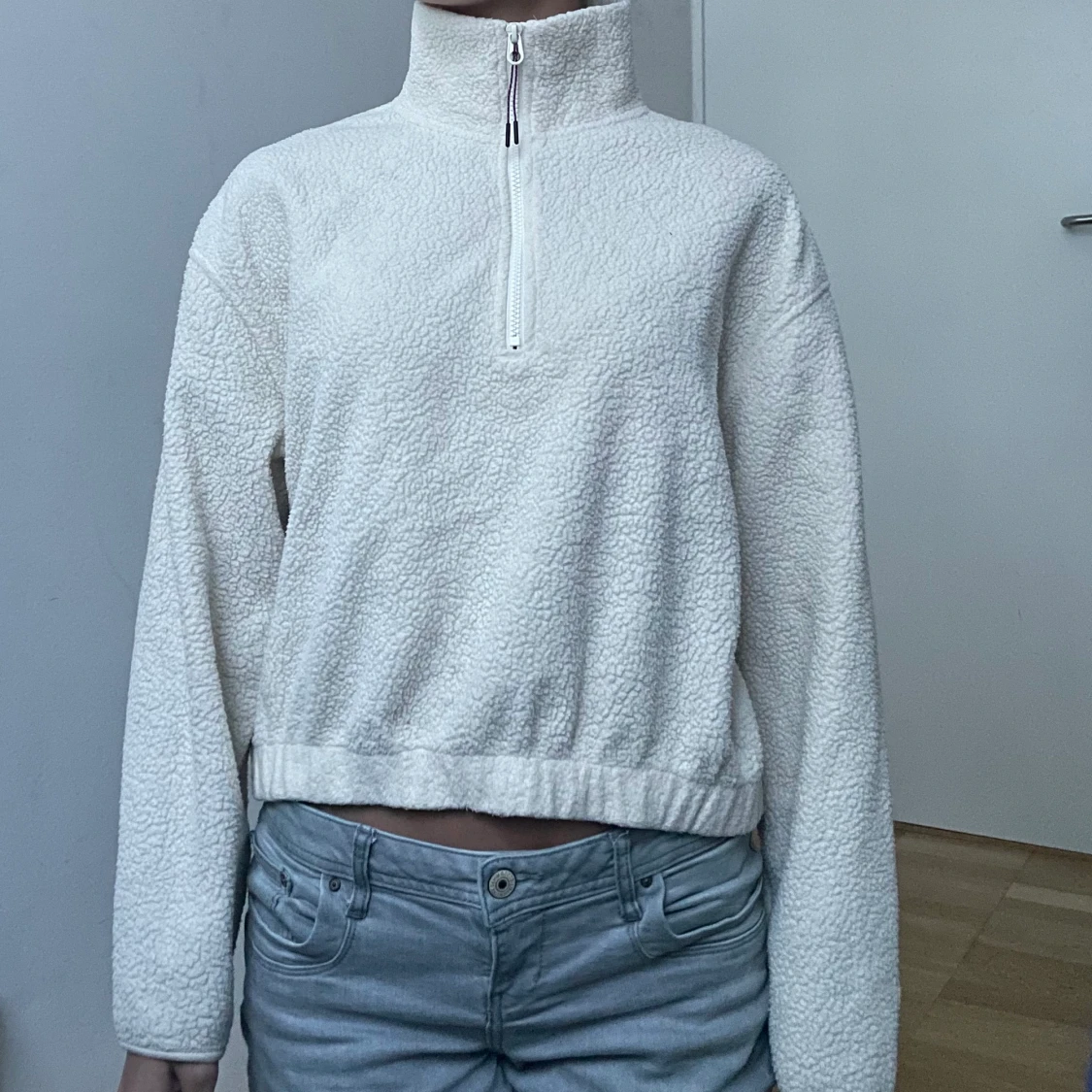Snygg och mysig tröja med halvdragkedja och hög krage. I beige Teddy.