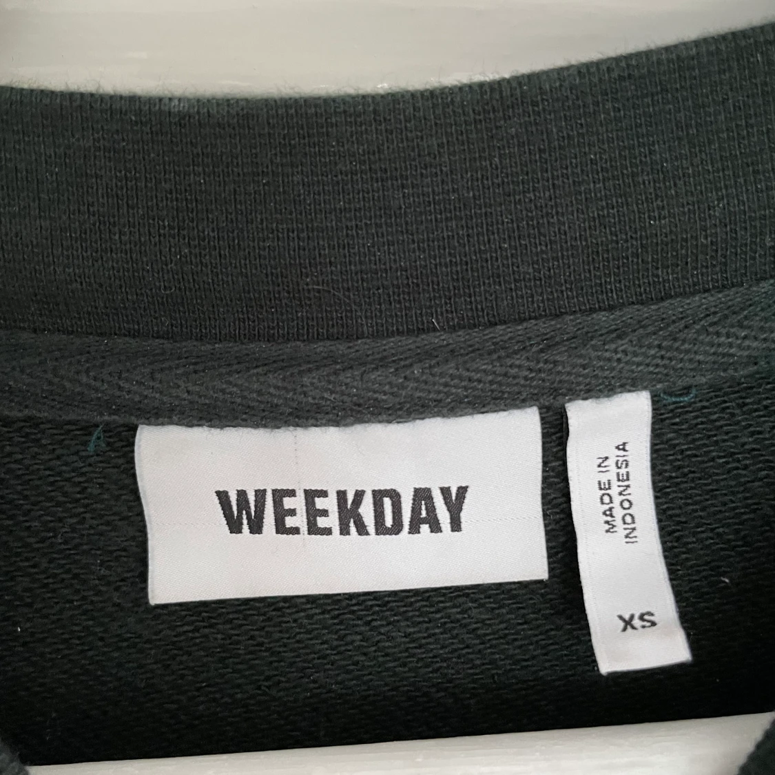 Snygg grön sweatshirt från Weekday som är i bra skick tack vare använd fåtal gånger. Väldigt oversized, sitter stort på mig som vanligen är S/M så den passar många storlekar. Smutsig spegel på andra bilden. Spårbar frakt med DHL inräknad i priset!!