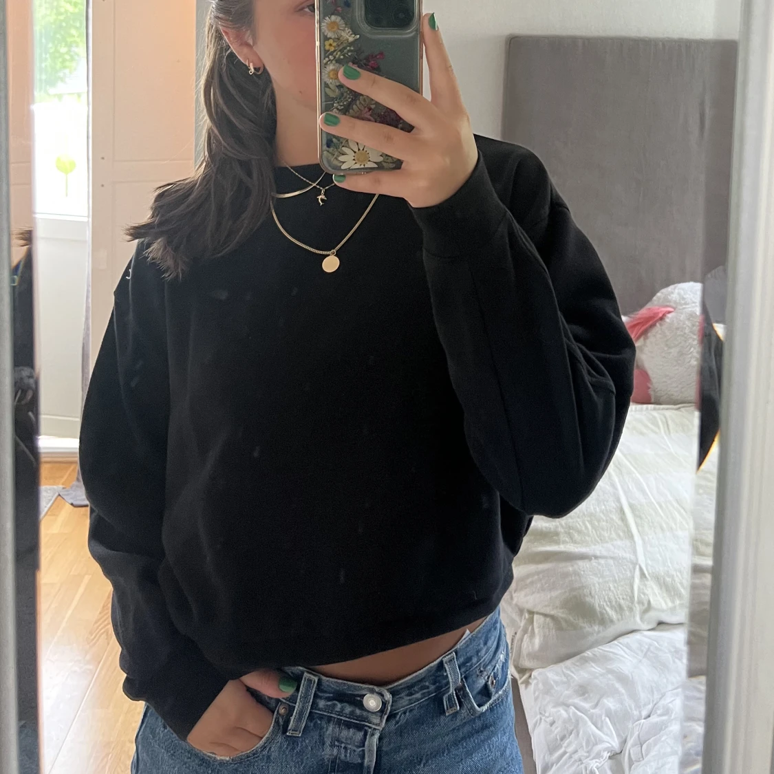 Lite kortare och boxig sweatshirt från weekday. Även något tunnare och superskön. Är i storleken XS, jag brukar bära S. Änvänd men är i mycket bra skick.