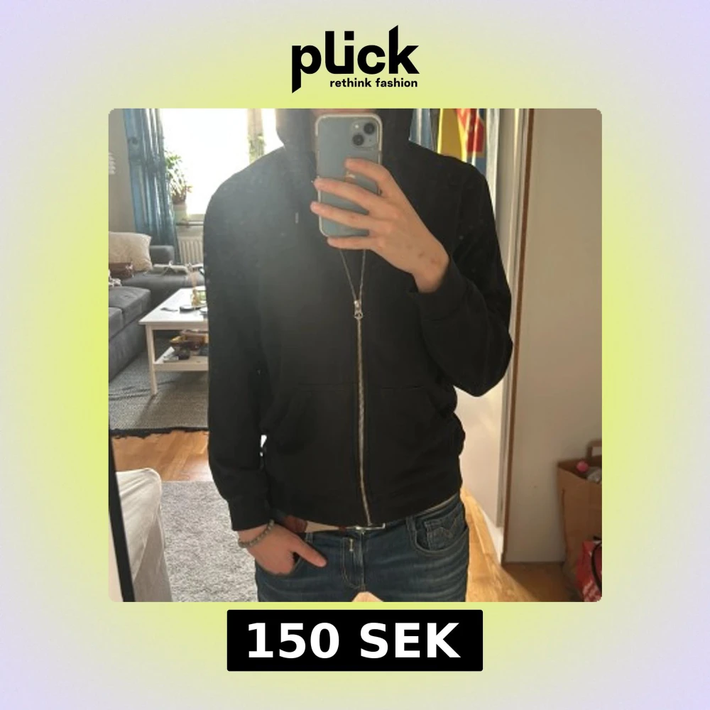 Svart hoodie från Weekday i storlek XS. Klassisk modell med huva, snörning och hel dragkedja framtill. Mjukt material i bomull och två fickor framtill. Perfekt för en chill och avslappnad stil.