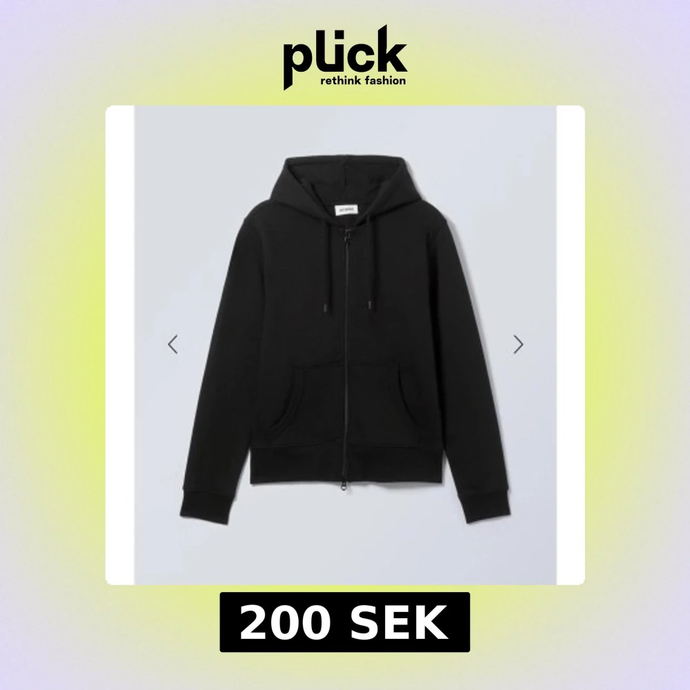 Snygg och bekväm svart zip hoodie från weekday med dragkedja och justerbar huva. Perfekt för en avslappnad stil. Den har en klassisk passform med fickor framtill.