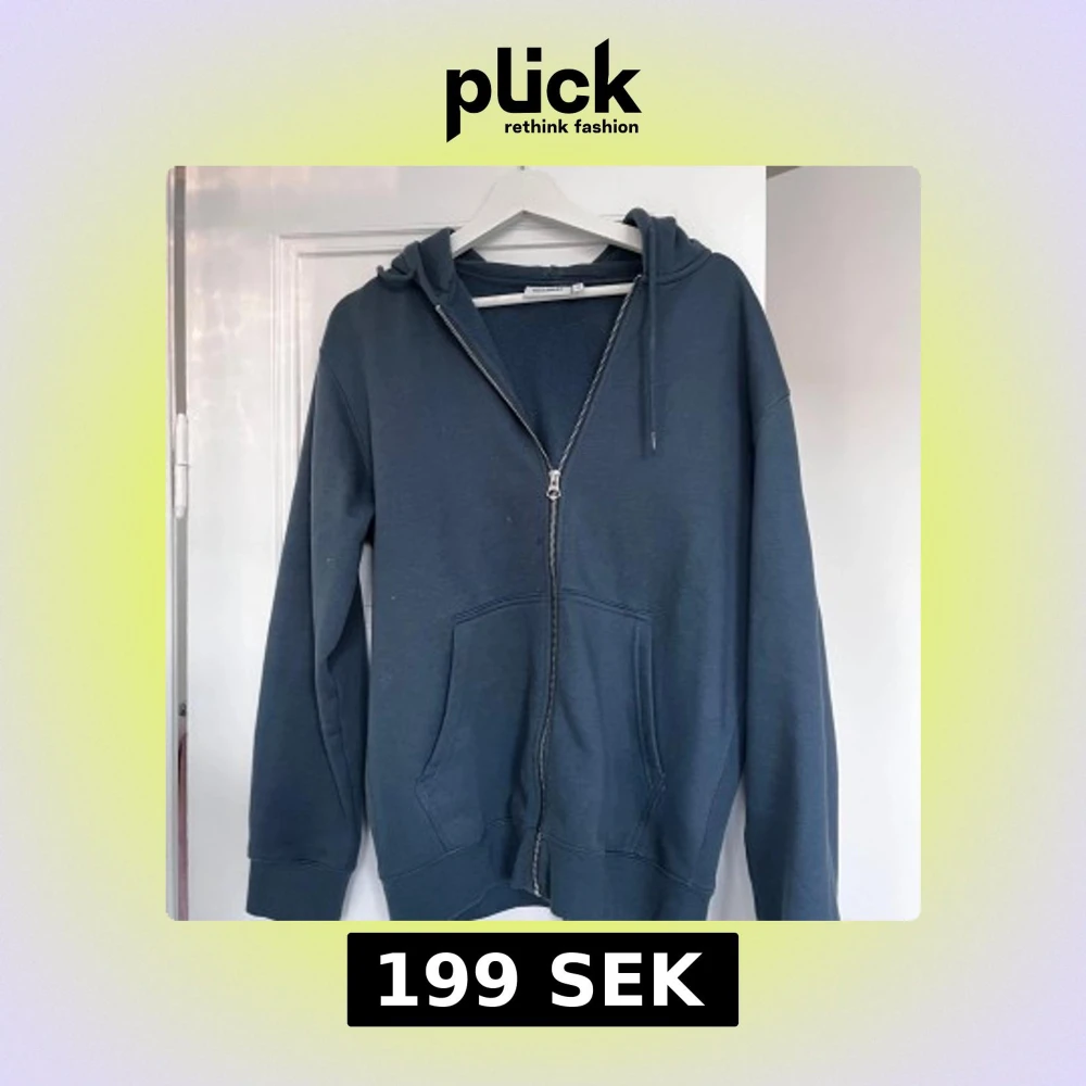 Säljer en stilren blå hoodie från Weekday. Storlek XS men passar S också. Tröjan har en dragkedja framtill och en klassisk huva. Perfekt för en avslappnad look.