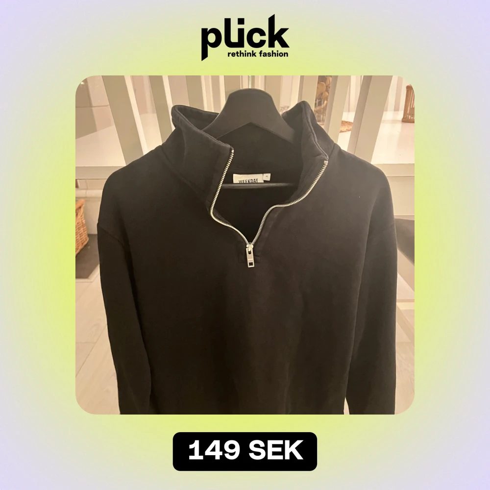 Säljer en stilren svart tröja från Weekday i storlek XS. Den har en praktisk dragkedja framtill och är perfekt för både vardag och chill. Tröjan är i bra skick och passar till alla tillfällen. Perfekt för höst och vinter!