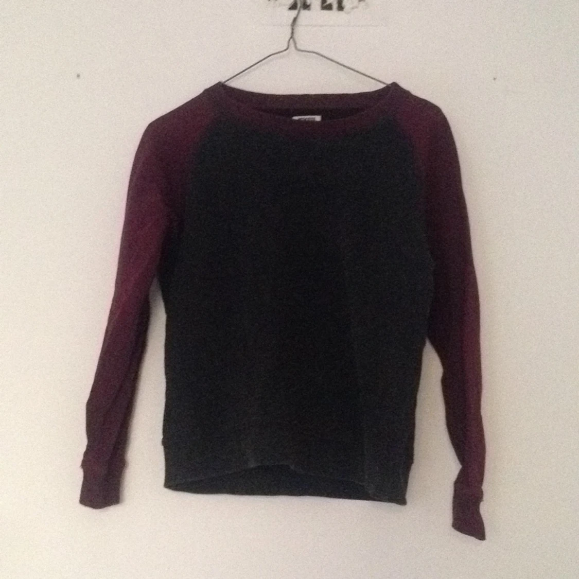 Vinröd och mörkgrå collegetröja från weekday. Sparsamt använd.
