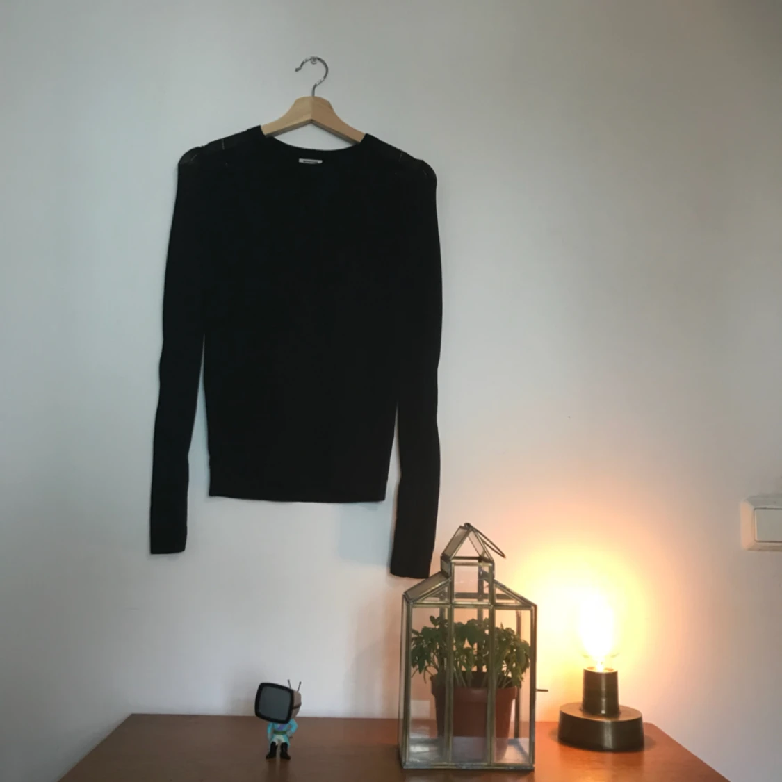 Tunnare tröja med detaljer. Färg: svart