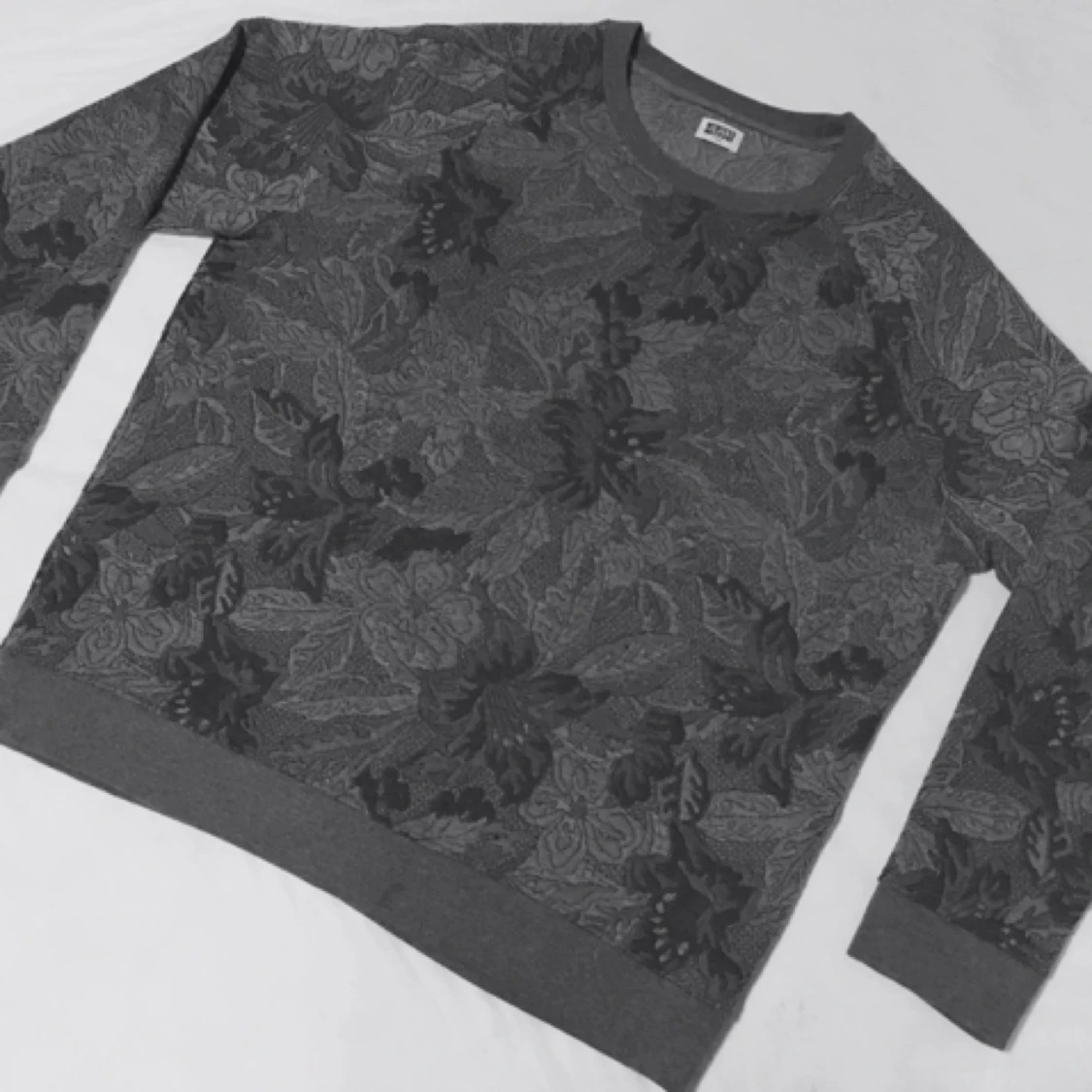 Tjockare god tröja i grtåa toner som sitter lite mer fast och ahr ett insytt mönster utav olika växter/blommor. Som ny!
