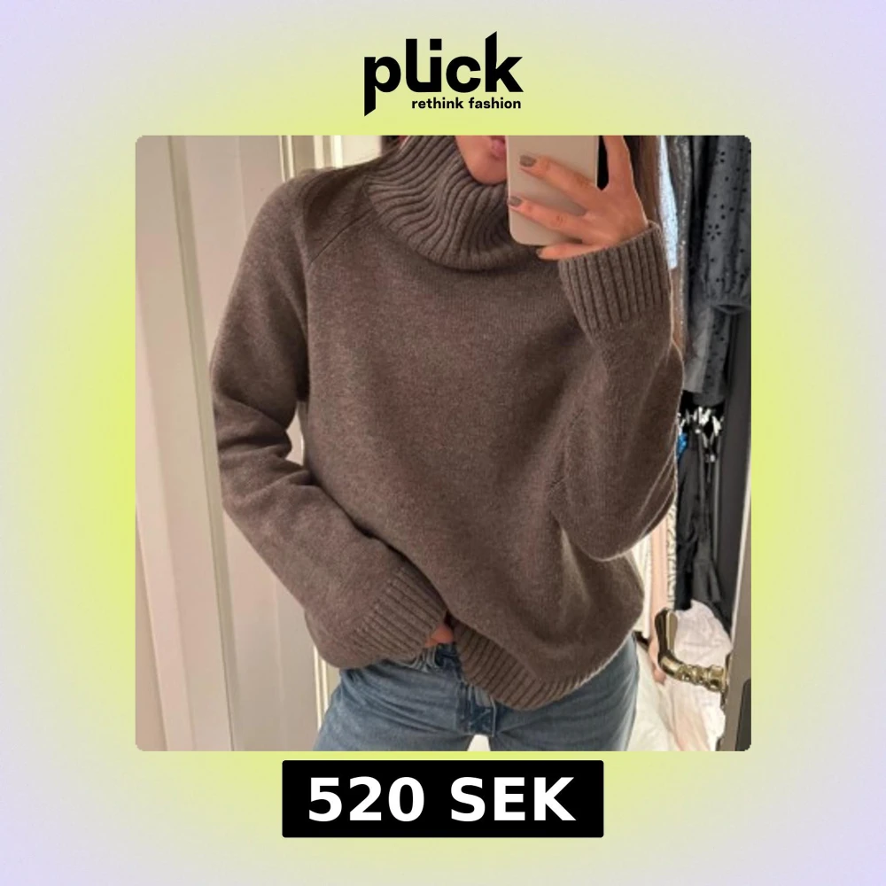 Mysig brun polotröja från Wera i 100% ull. Tröjan har en hög, ribbad polokrage och långa ärmar med breda muddar. Perfekt för kyliga dagar och enkel att styla med jeans eller kjol.