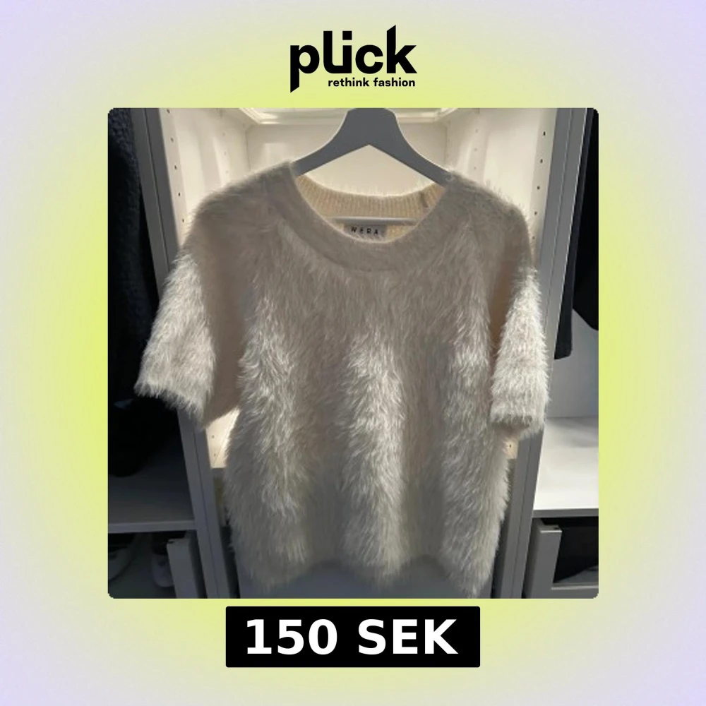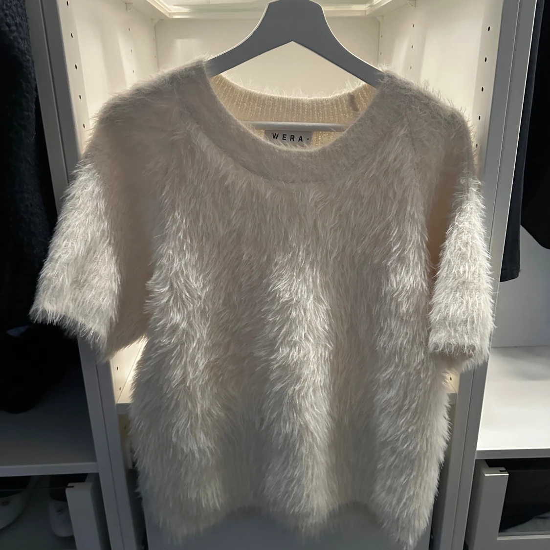 Supermjuk och fluffig vit tröja från Wera med korta ärmar och rund hals. Tröjan har en cool pälsliknande yta som ger en unik look och passar perfekt när du vill sticka ut lite extra. Perfekt för dig som gillar trendiga och mysiga plagg.
