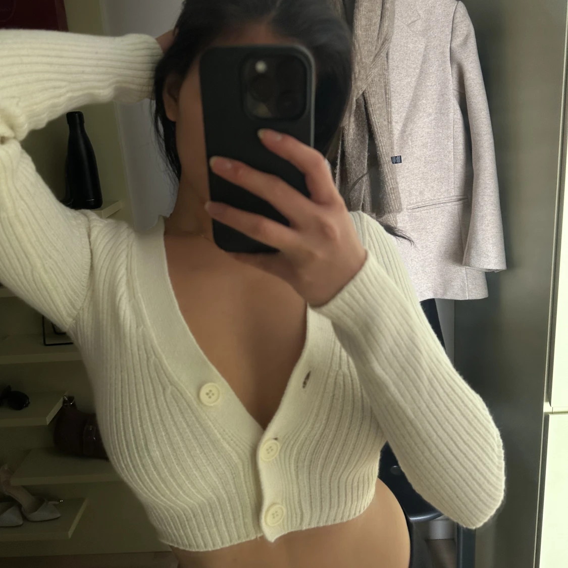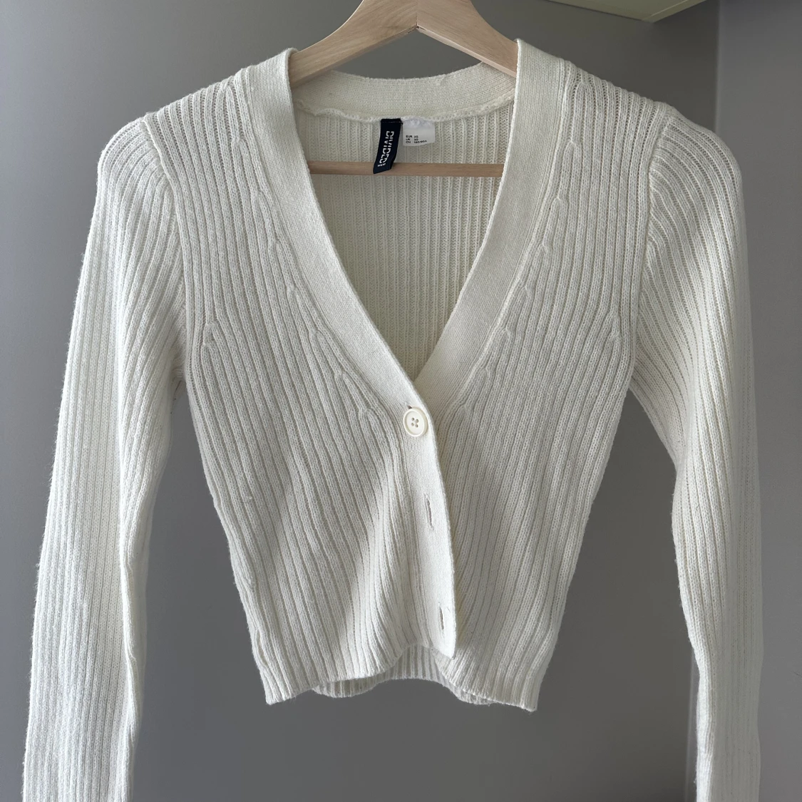 Mysig vit cropped cardigan från HM, XS, använd ett fåtal gånger men i fint skick ♥️