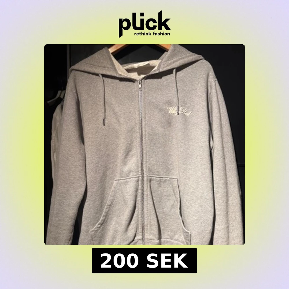 Säljer en stilren grå hoodie från Whyred med broderad logga på bröstet. Tröjan har huva med snörning, två fickor framtill och hel dragkedja. Perfekt för chill dagar och enkel att matcha med jeans eller joggers.