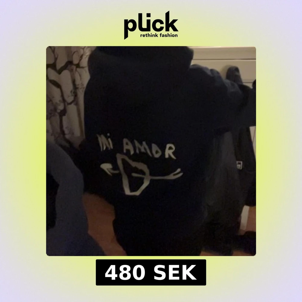 Säljer en svart hoodie från Mira Paris i ekologisk bomull. På ryggen står det 'Mi Amor' med ett hjärta och pilar. Säljer då den inte används längre ❤️.