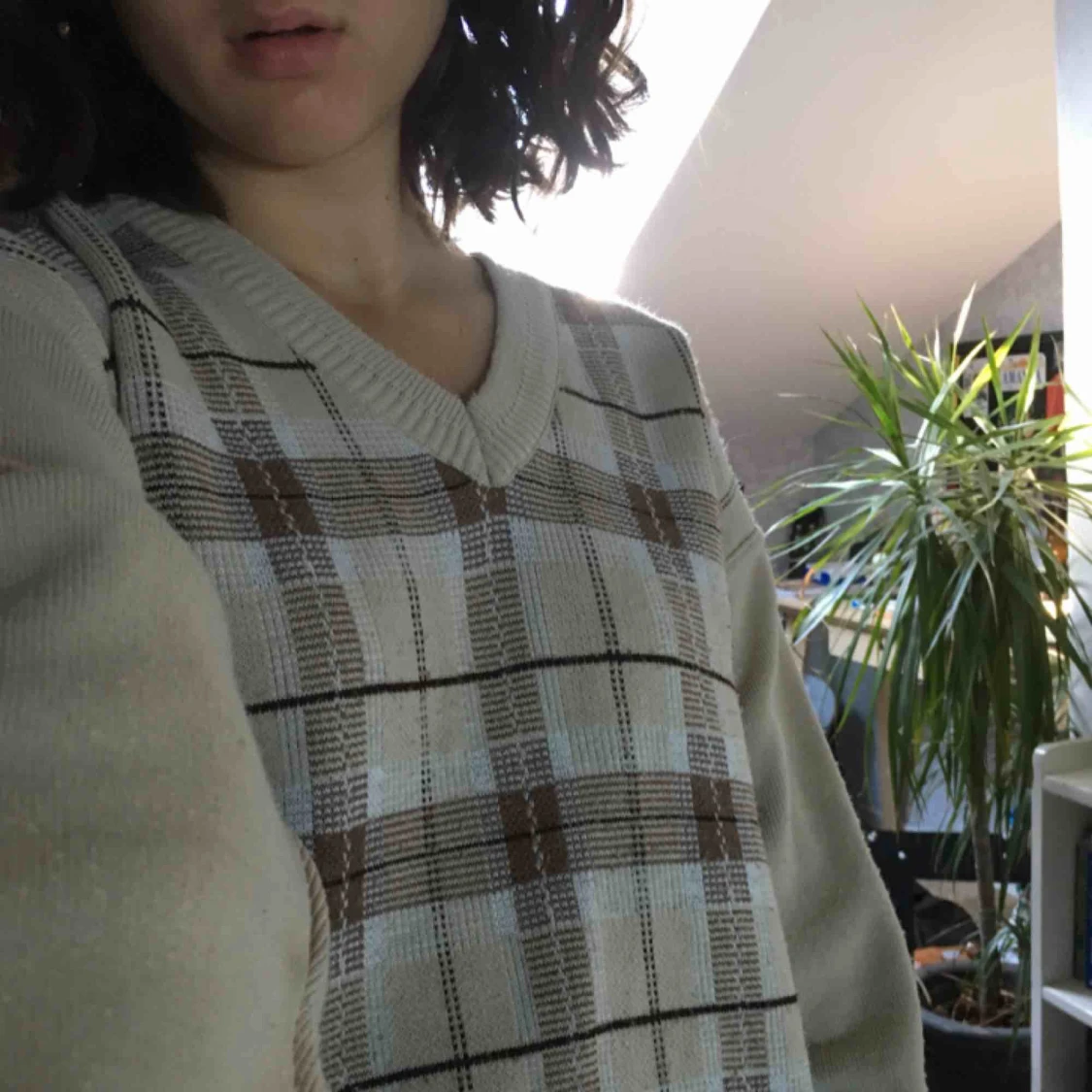 Cool rutig vintage tröja i storlek L jag brukar vanligtvis ha S och den passar S/M beroende hur man vill att den ska sitta