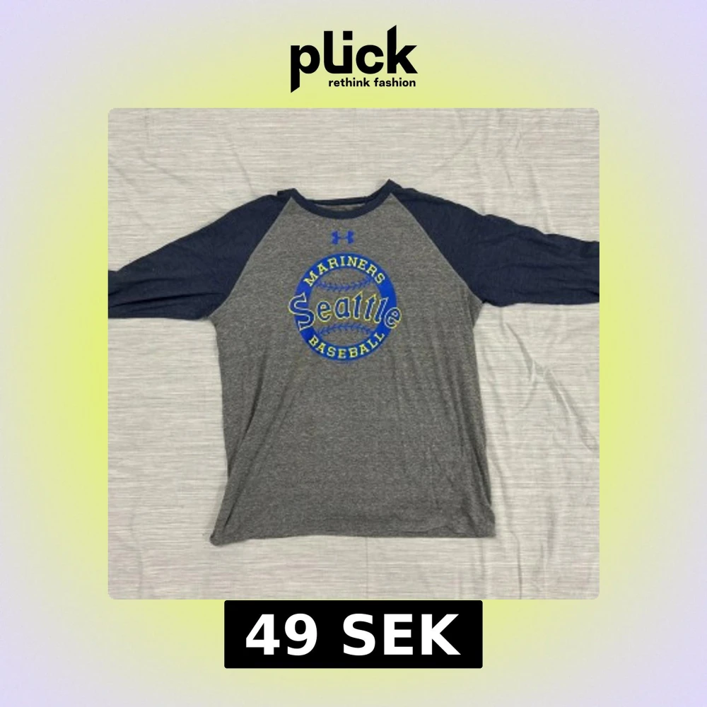 Snygg långärmad tröja från Under Armour i grått med marinblå ärmar och tryck med Seattle Mariners Baseball i blått och gult. Tröjan har loose fit och är gjord i mjuk bomullsmix, perfekt för sport eller chill. Klassisk rund hals och HeatGear-material.