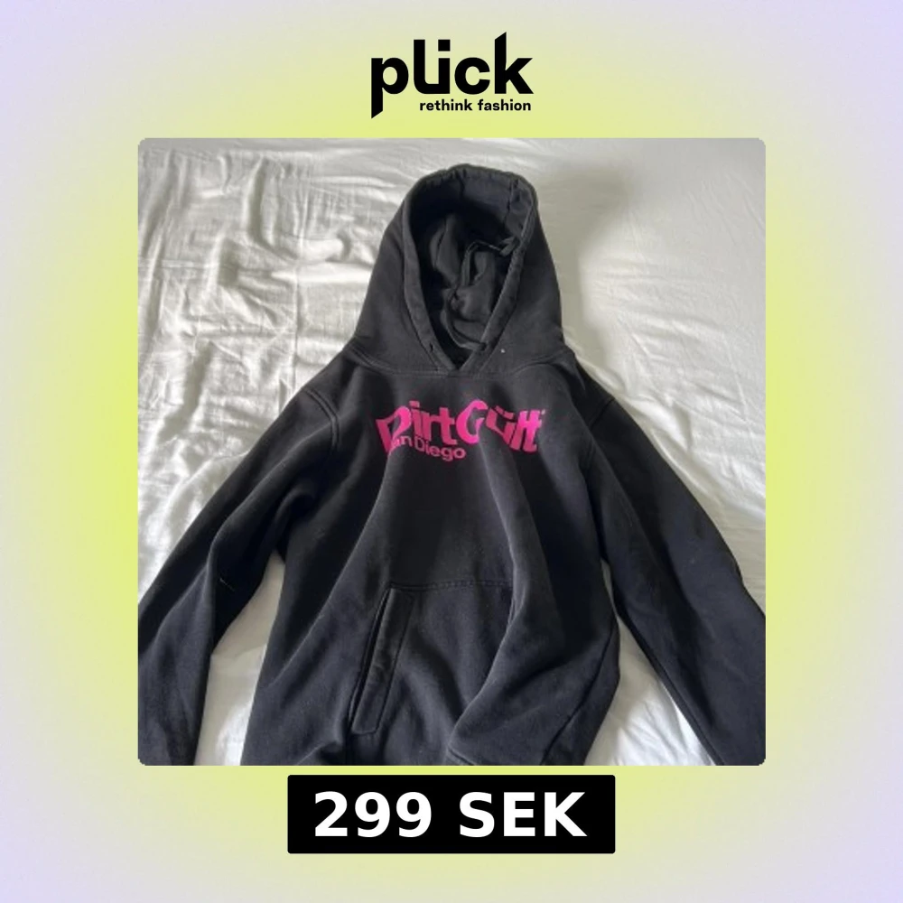 Svart hoodie från Dirt Cult San Diego med stor rosa logga på bröstet. Klassisk modell med huva och känguruficka framtill. Perfekt för dig som gillar streetwear och vill sticka ut med en fet tryckdetalj.