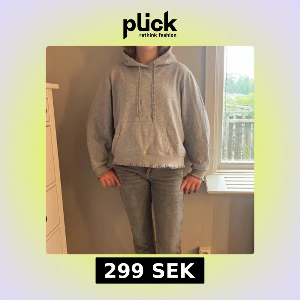 Grå hoodie från FB Sister/ New Yorkermed volangdetaljer vid ärmslut och nederkant. Tröjan har huva med snörning och en klassisk magficka. Mjuk och skön. Storlek XL men liten i storlek så passar även S/ de flesta!