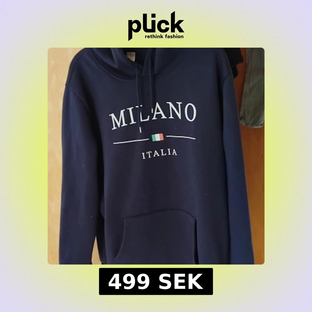 Snygg mörkblå hoodie med trycket 'MILANO ITALIA' och en liten italiensk flagga på bröstet. Tröjan har huva med snörning och en stor magficka. Perfekt för chill dagar och streetstyle. Passar dig som gillar enkel och stilren design.