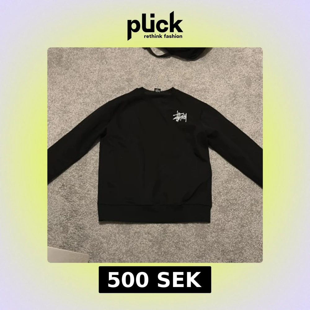 Svart crewneck sweatshirt från Stüssy i storlek XL. Tröjan har klassisk passform, rund halsringning och Stüssy-logga broderad i vitt på bröstet. Perfekt basic med streetwear-vibe och mjukt material som känns skönt mot huden.